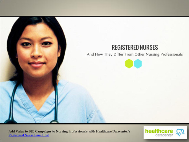 At Healthcare Datacenter we believe that it all begins with proper implementation of your marketing strategies. With over 200 nursing subspecialties, it is not enough for you to be able to identify your audience base – but also be able to successfully engage with them. Our email lists of registered nurses are built accordingly – accurate, verified and segmented – so as to be able to offer to clients data that they need exclusively for their b2b campaigns. So contact us today and allow us to aid your campaigns with our registered nurses directory!