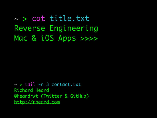 and protocol headers from Mach-O binaries. http://stevenygard.com/projects/class-dump/ ~ > class-dump class-dump 3.5 (64 bit) Usage: class-dump [options] <mach-o-file> ! where options are: -a show instance variable offsets -A show implementation addresses --arch <arch> choose a specific architecture