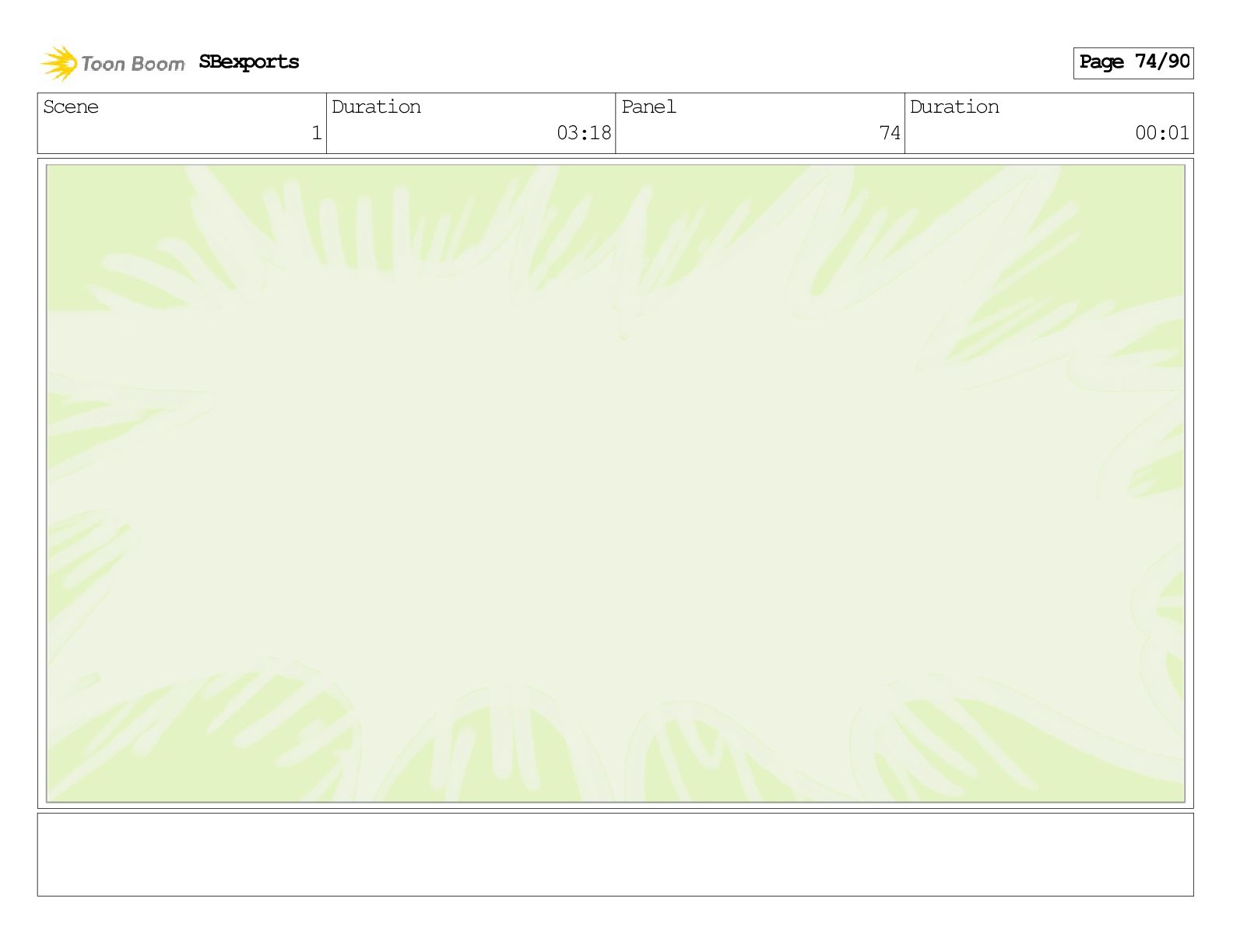 Scene 1 Duration 03:18 Panel 74 Duration 00:01 SBexports Page
