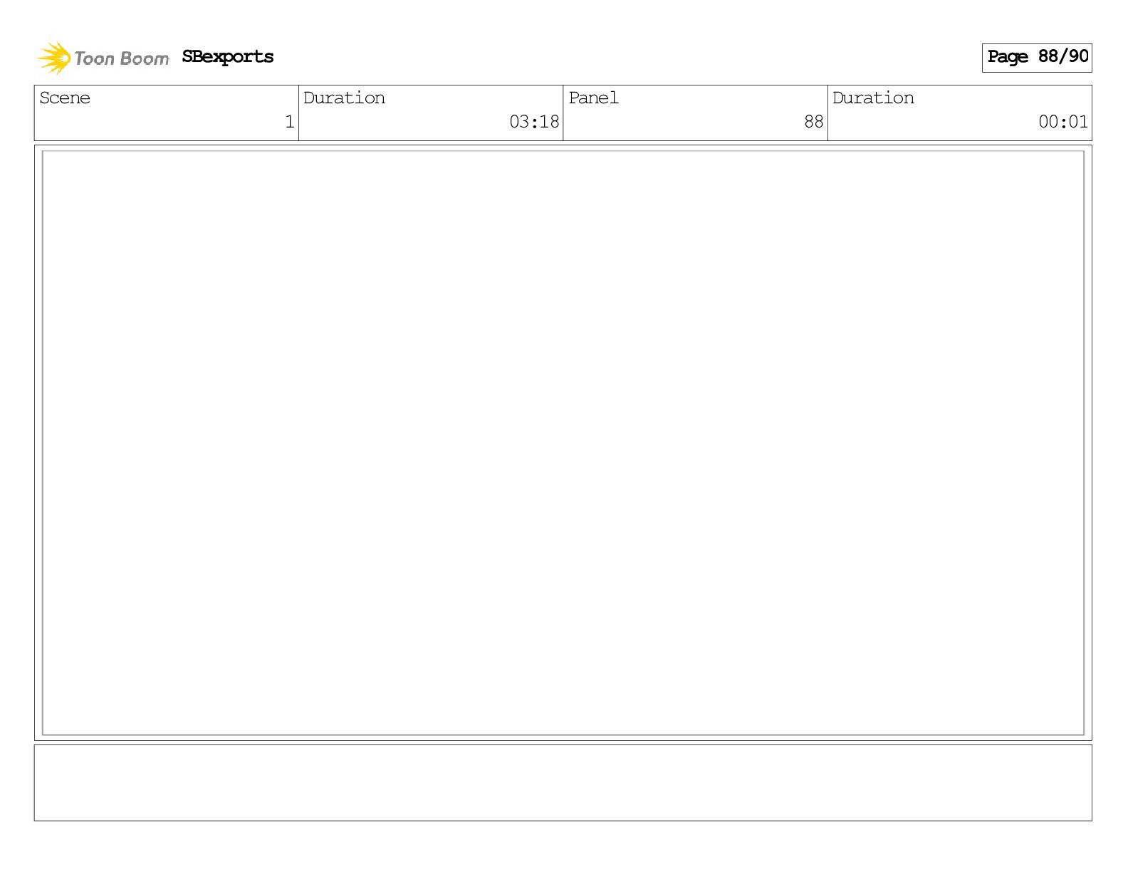 Scene 1 Duration 03:18 Panel 88 Duration 00:01 SBexports Page