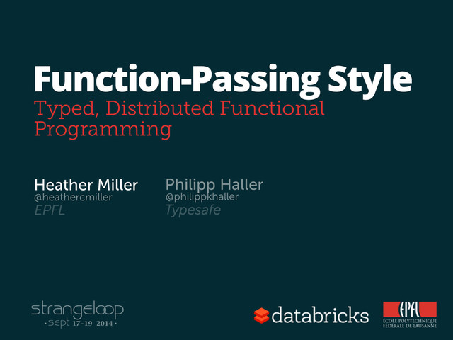 This talk presents a new paradigm of “Function-Passing” as an effective means of asynchronous and disributed programming. By bringing together recent advances in type systems research and new language features in Scala, this paradigm promotes new patterns of programming in distributed environments using distributable lambdas and types.