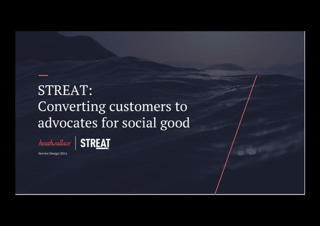 for STREAT • Create a roadmap of discrete, actionable mini- projects that could be delivered either by HeathWallace or one of STREAT’s other collaborators • Design a product or service that helps support STREAT’s social work by turning customers into advocates • Forge a lasting relationship with STREAT that delivers value over time for both parties
