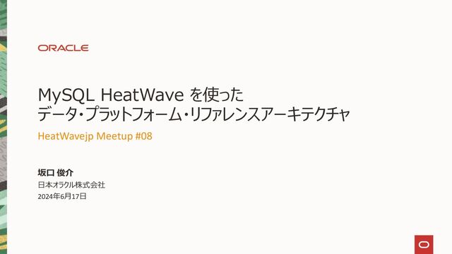 HeatWavejp Meetup #08 「MySQL HeatWave に企業の社内外で発生するあらゆるデータを取り込み、活用しよう!」(2024/6/17 開催)の講演資料です。
