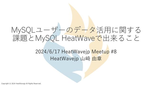 HeatWavejp Meetup #08 「MySQL HeatWave に企業の社内外で発生するあらゆるデータを取り込み、活用しよう!」(2024/6/17 開催)の講演資料です。