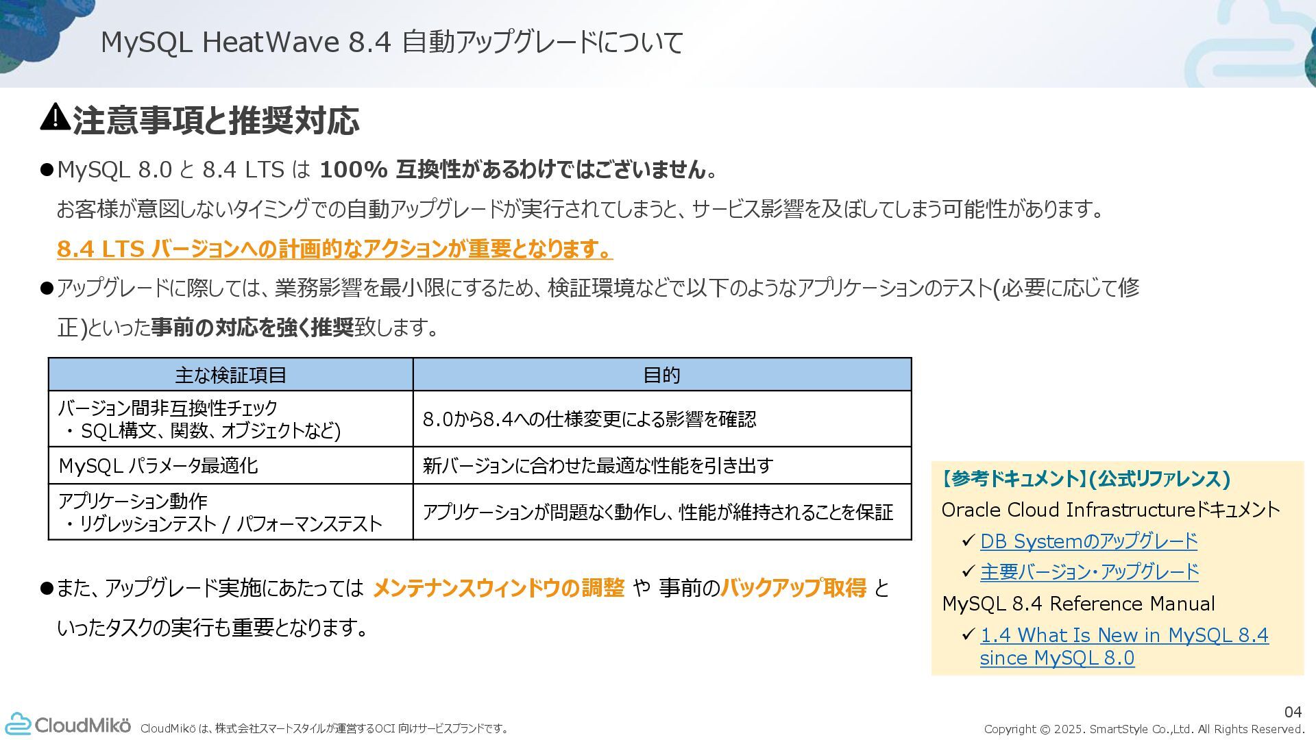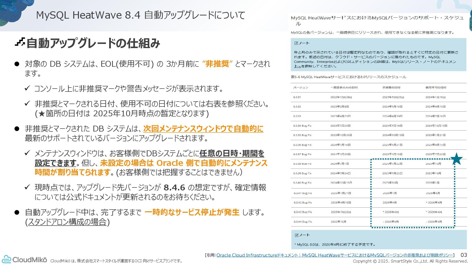 - MySQL HeatWave 8.4 自動アップグレードについて