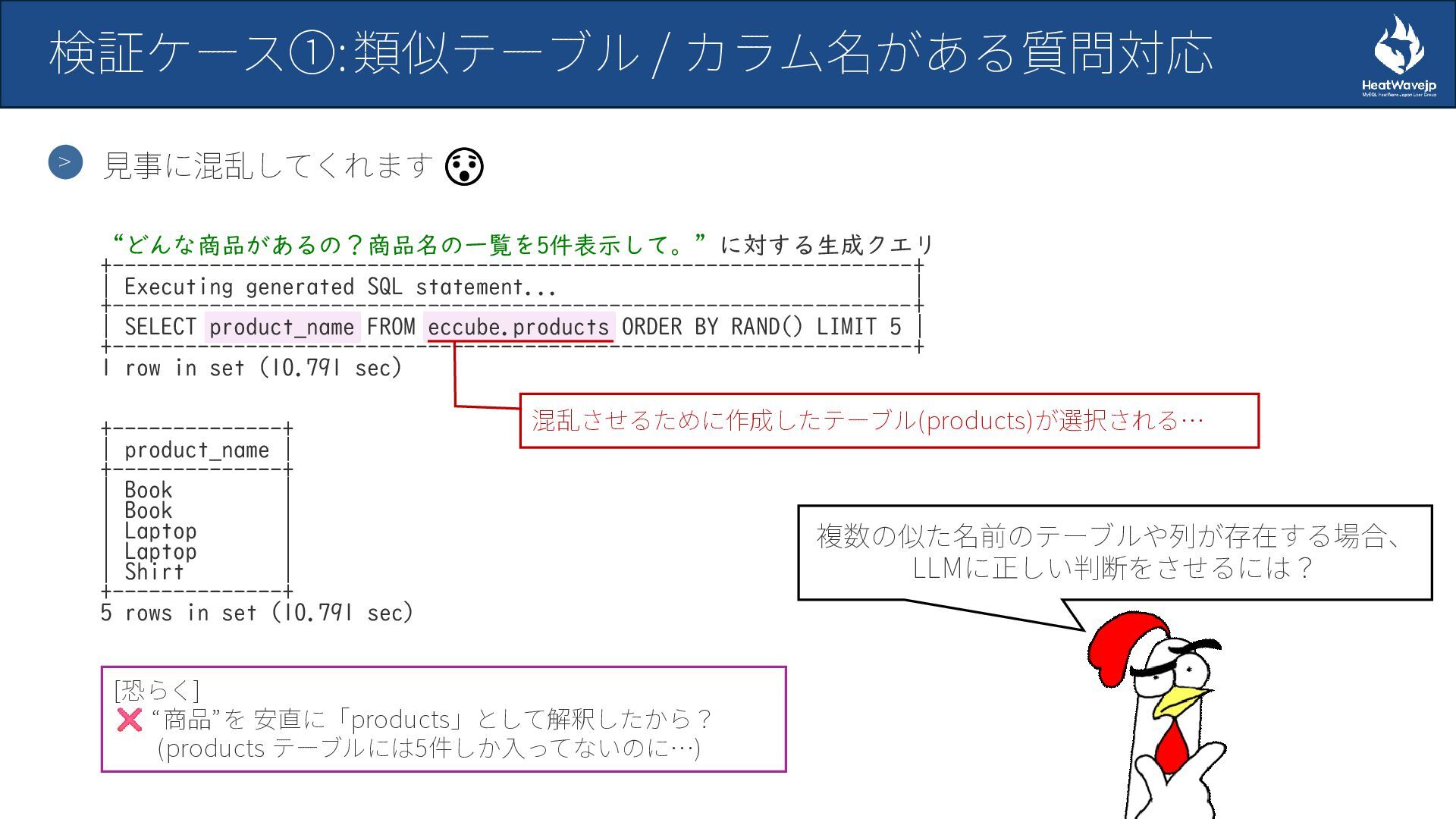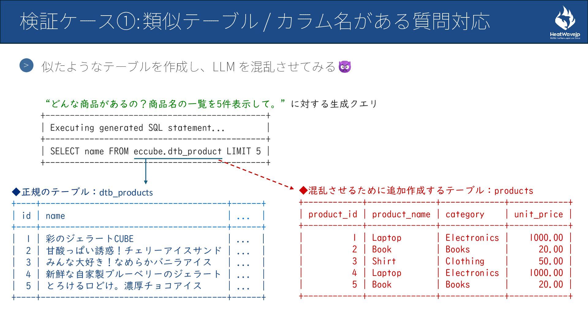 - 検証ケース①: 類似テーブル/カラム名