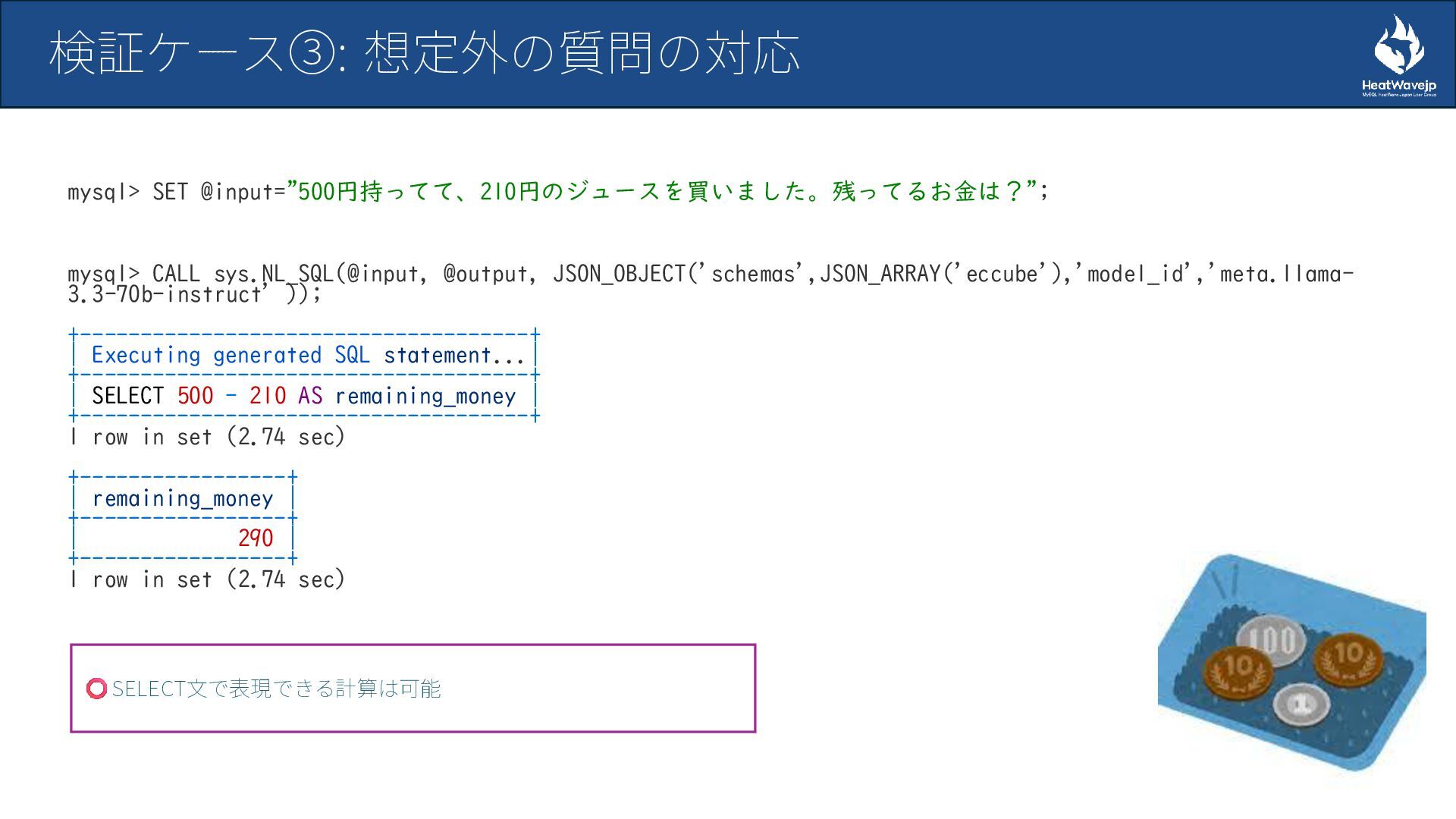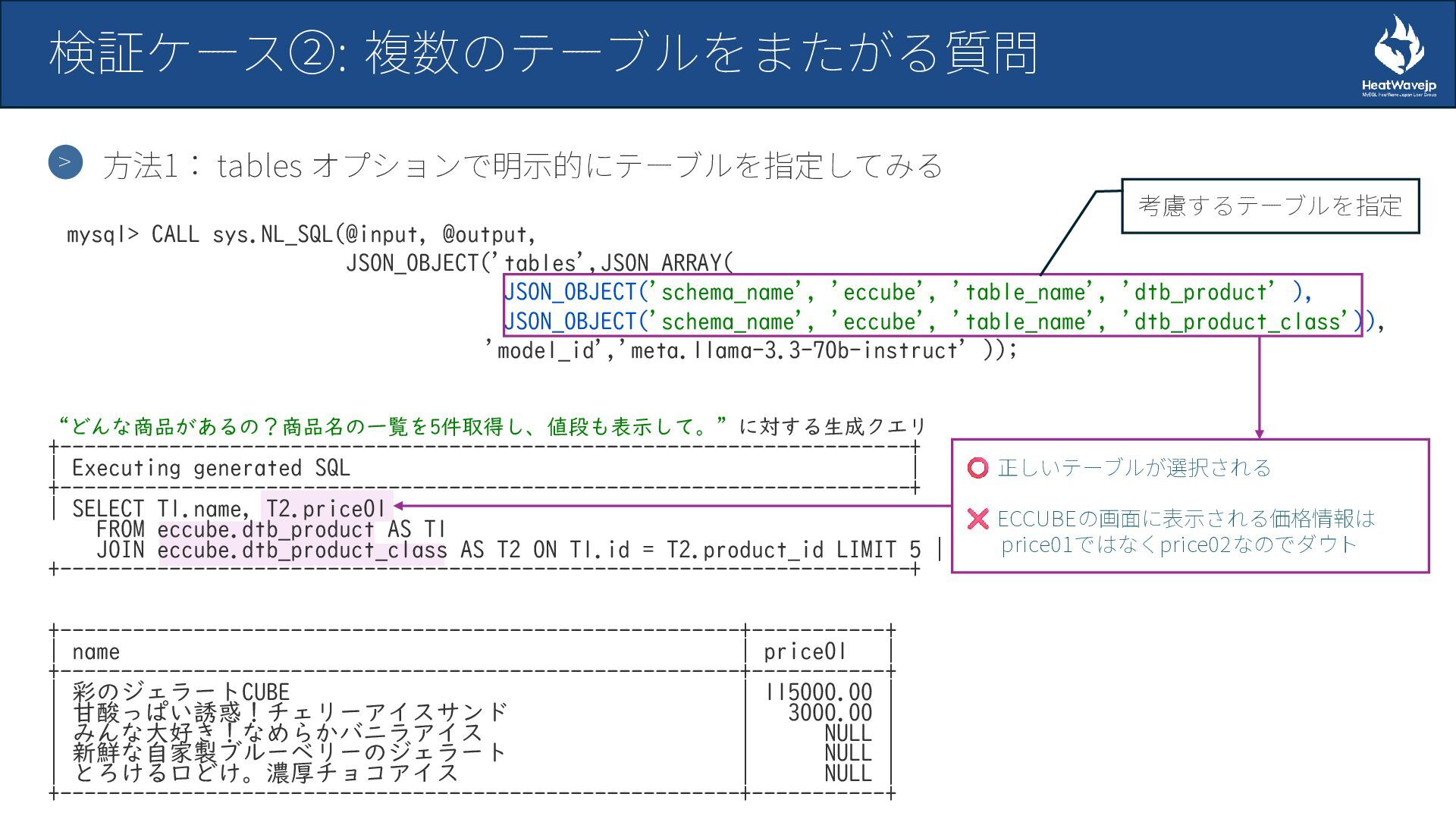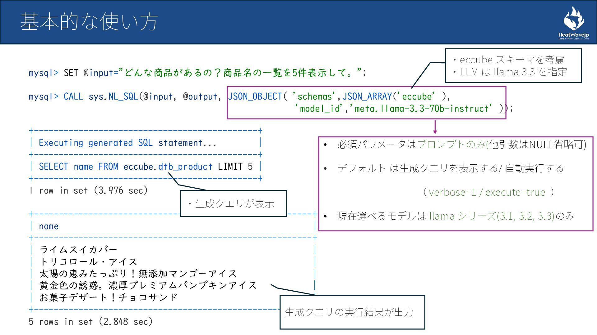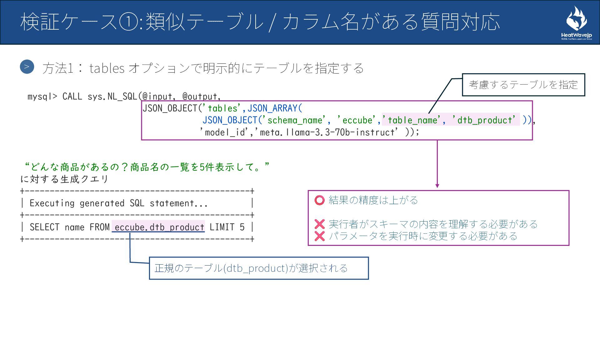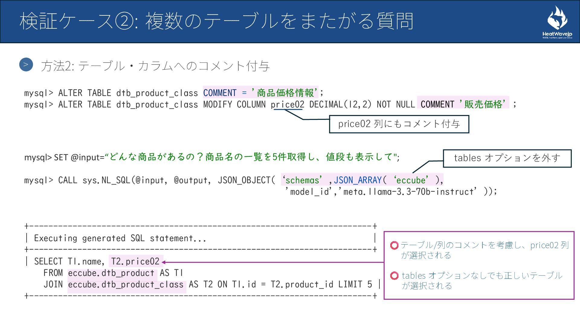 MySQL HeatWave 自然言語SQL生成機能の検証