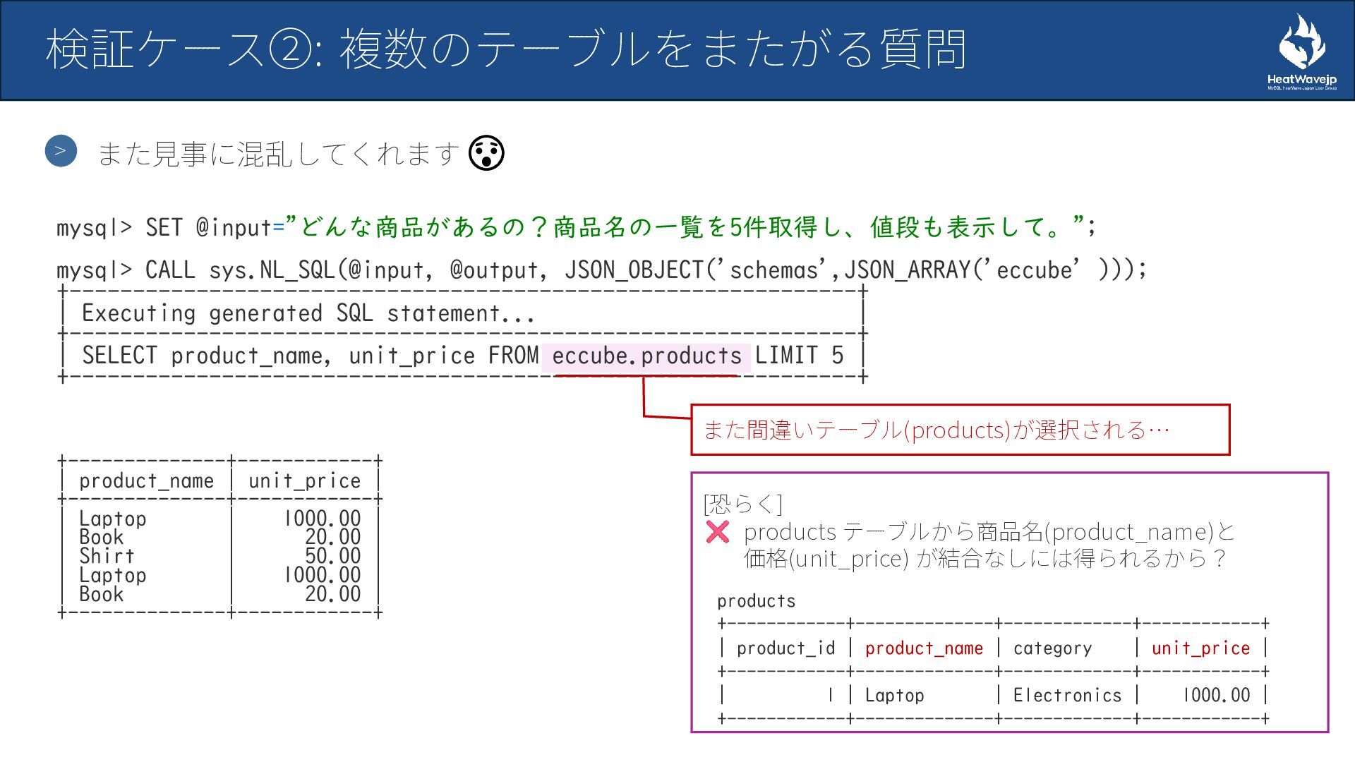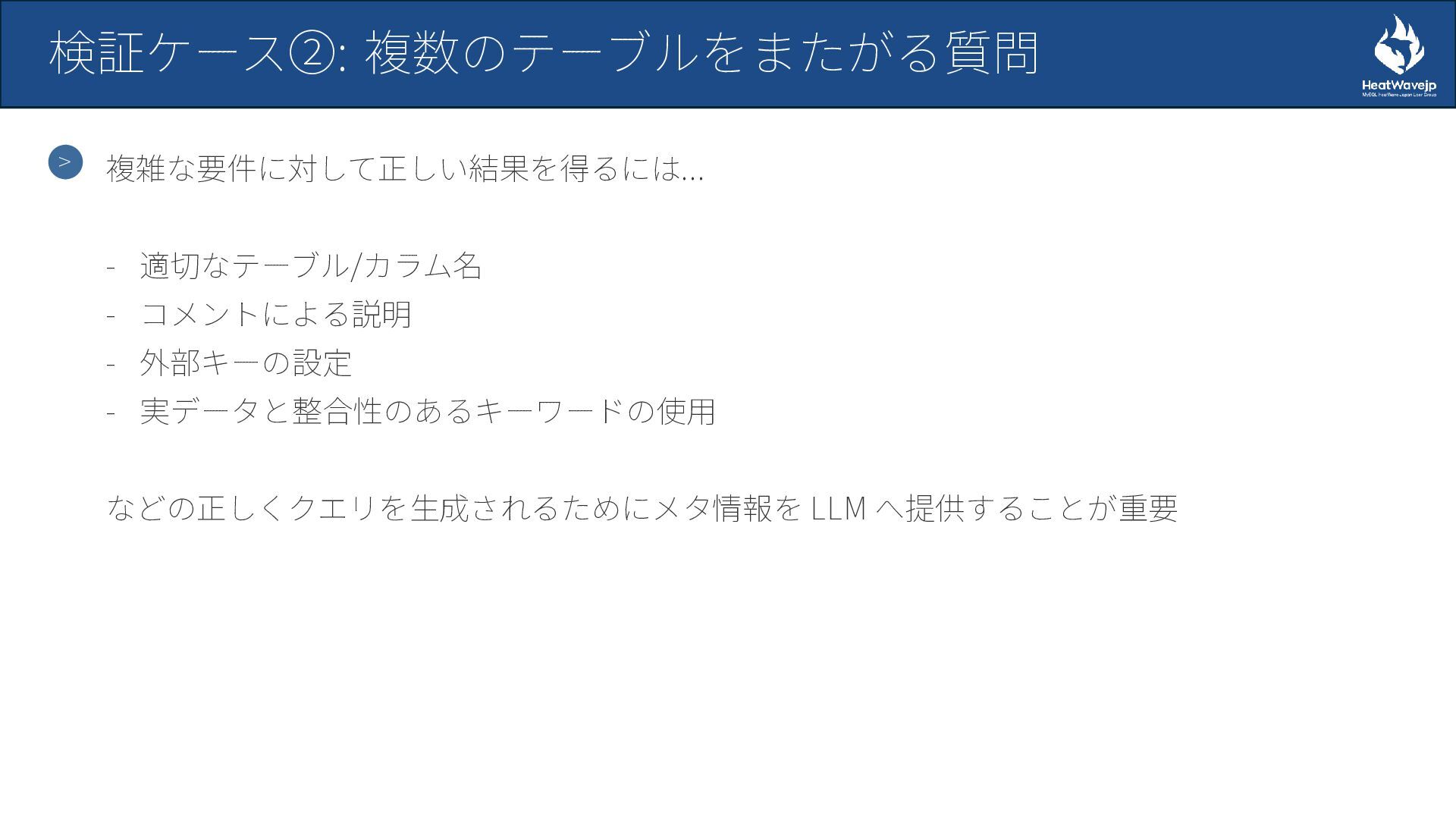 - 検証ケース②: 複数テーブルをまたがる質問