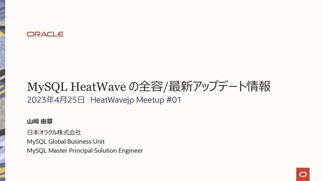 HeatWavejp Meetup #01 「MySQL HeatWave とは何か?」(2023/04/25 開催)の講演資料です。