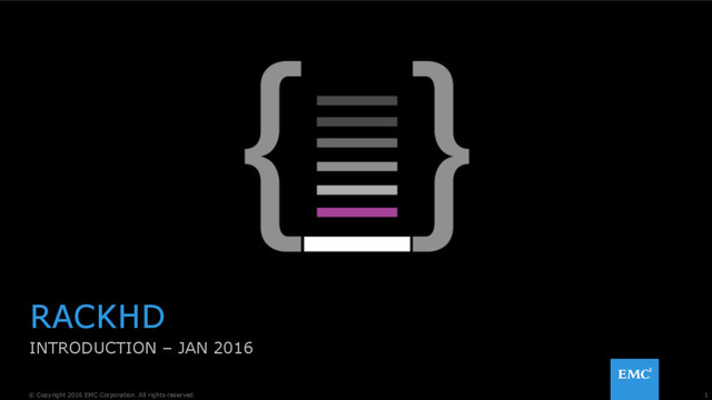 Hardware Management and Orchestration • Open Sourced by EMC Dec 2015 • Screencast Overview – https://www.youtube.com/watch?v=cCiXtROSt8U HTTPS://GITHUB.COM/RACKHD/RACKHD HTTP://RACKHD.READTHEDOCS.ORG/