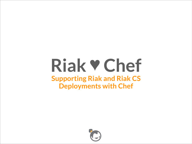 This deck explores the history of maintaining the Riak/Riak CS cookbooks and goes over ways people are using them.
