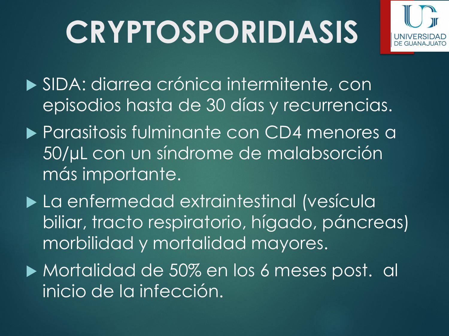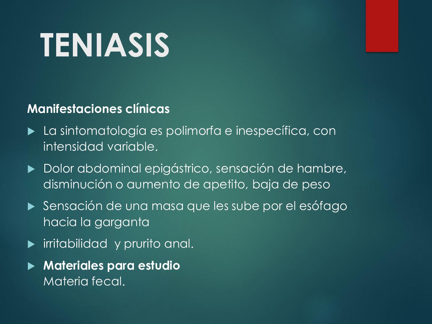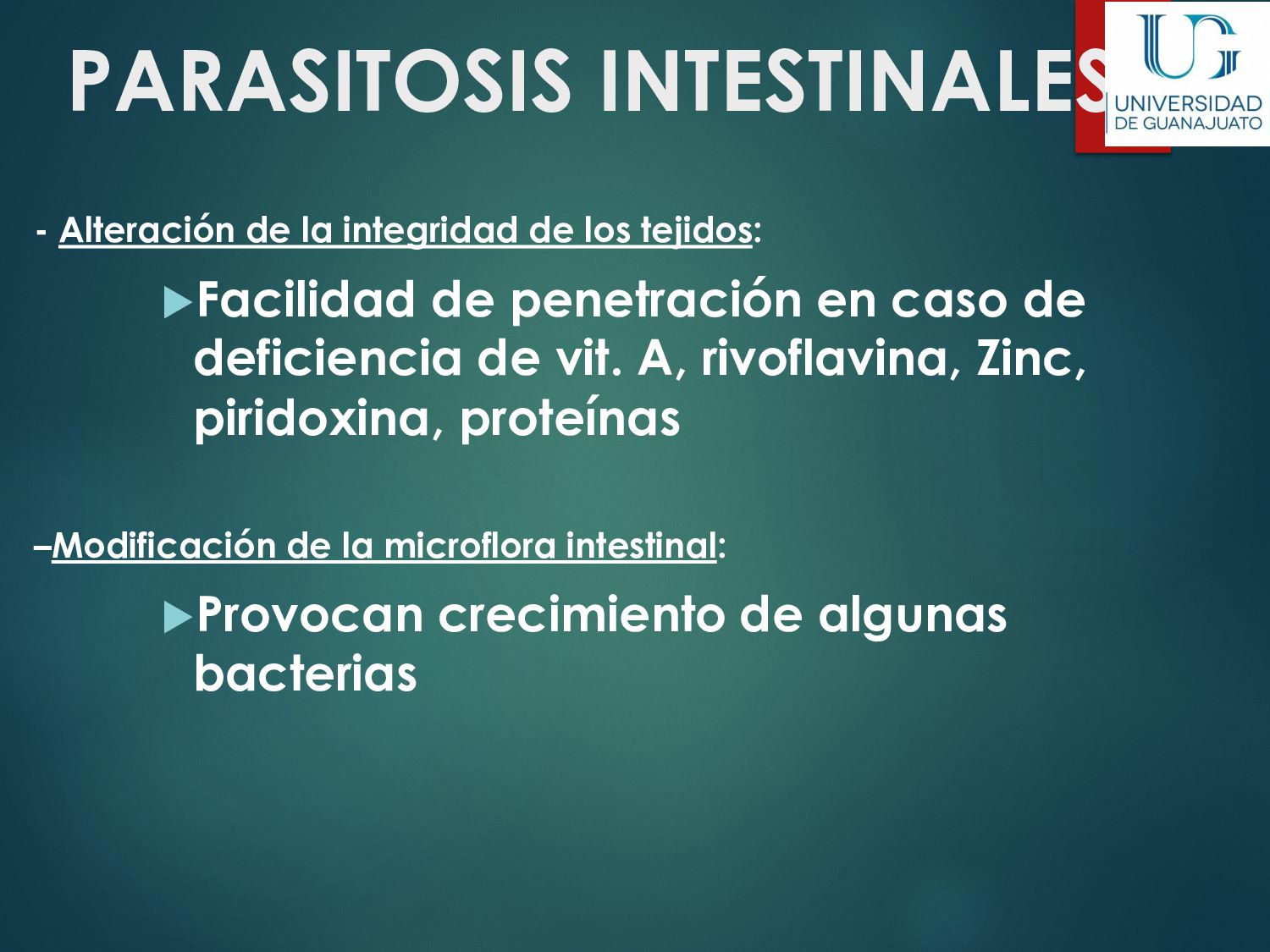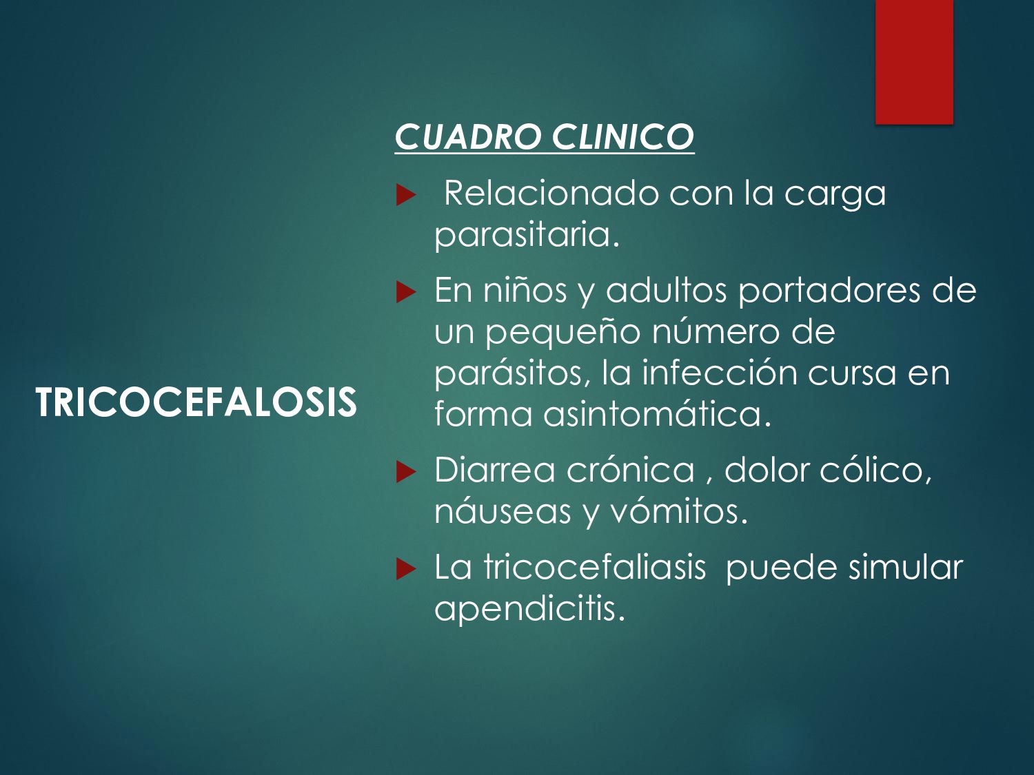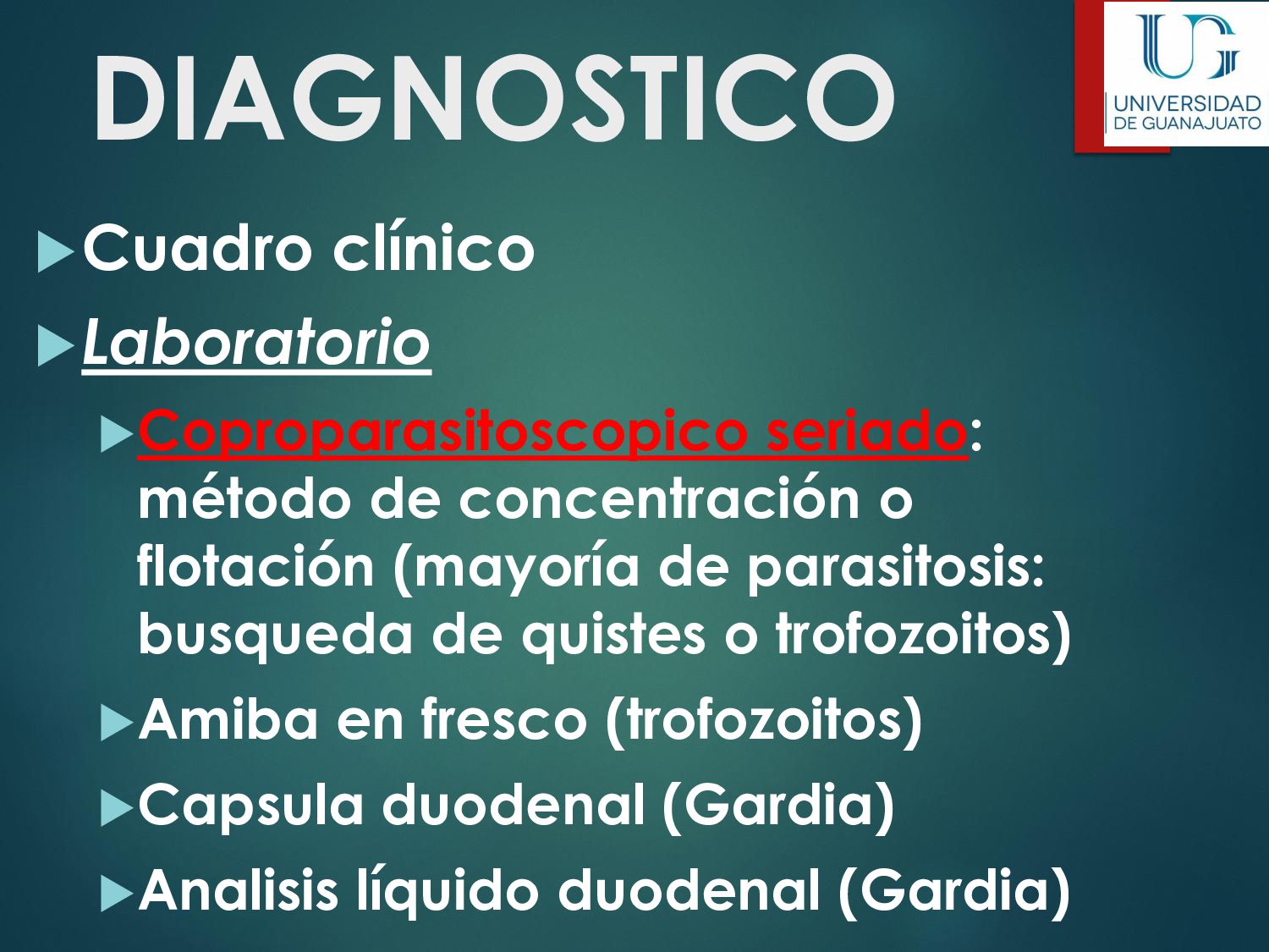 náusea, vómito, disminución del apetito, astenia. La enfermedad aguda suele resolverse en unas semanas, aún sin tratamiento. 30 - 50% desarrolla una parasitosis crónica: Diarrea recurrente, Esteatorrea, Evidencia bioquímica de malabsorción de grasas, lactosa, vitamina A y vitamina B12, Disminución de peso y deficiencias en el crecimiento y desarrollo infantil.