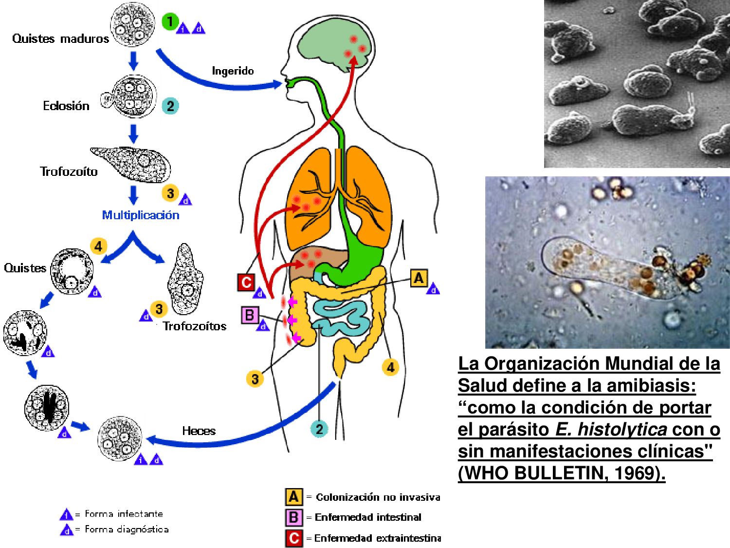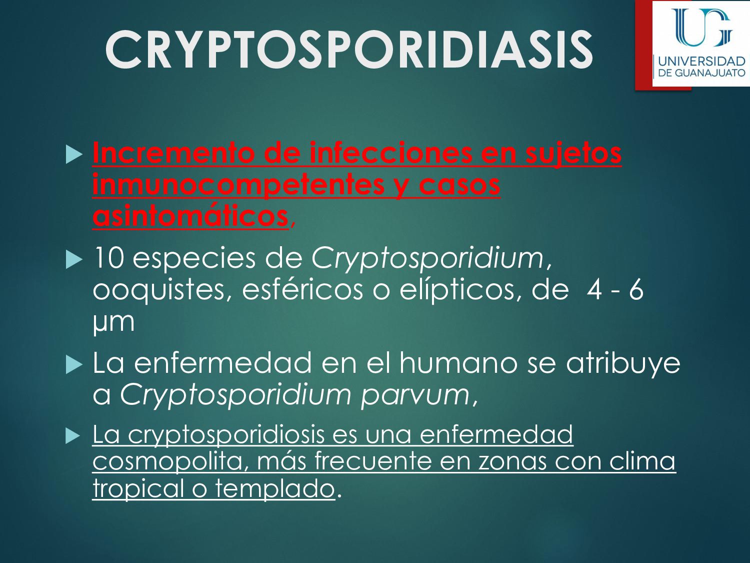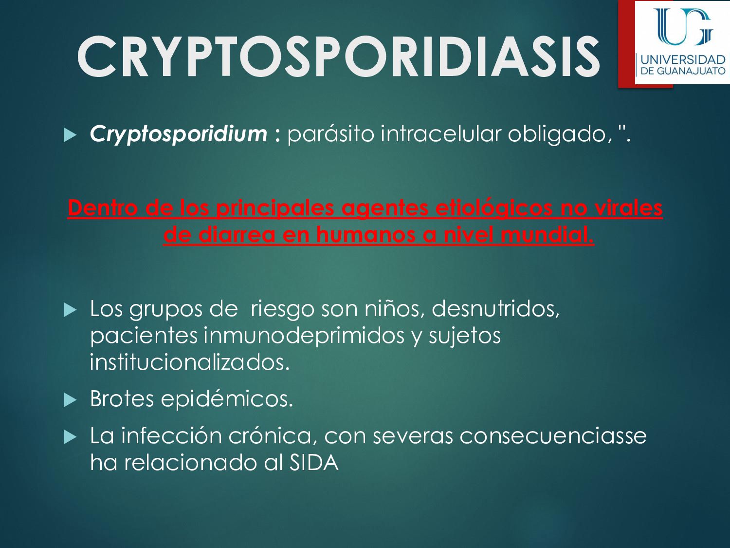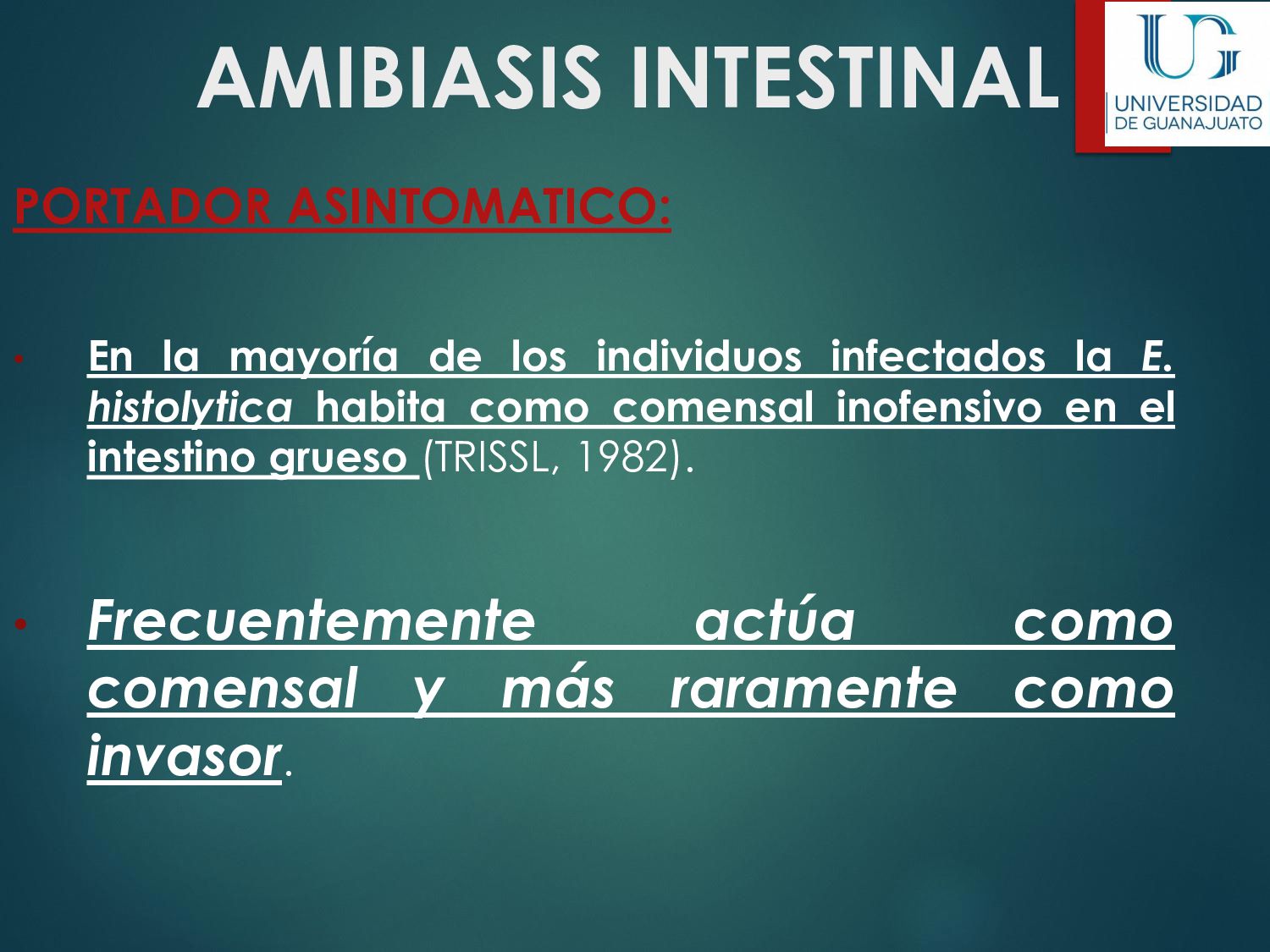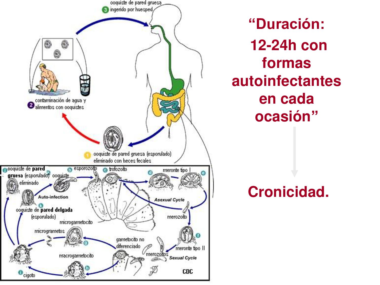 náusea, vómito, disminución del apetito, astenia. La enfermedad aguda suele resolverse en unas semanas, aún sin tratamiento. 30 - 50% desarrolla una parasitosis crónica: Diarrea recurrente, Esteatorrea, Evidencia bioquímica de malabsorción de grasas, lactosa, vitamina A y vitamina B12, Disminución de peso y deficiencias en el crecimiento y desarrollo infantil.