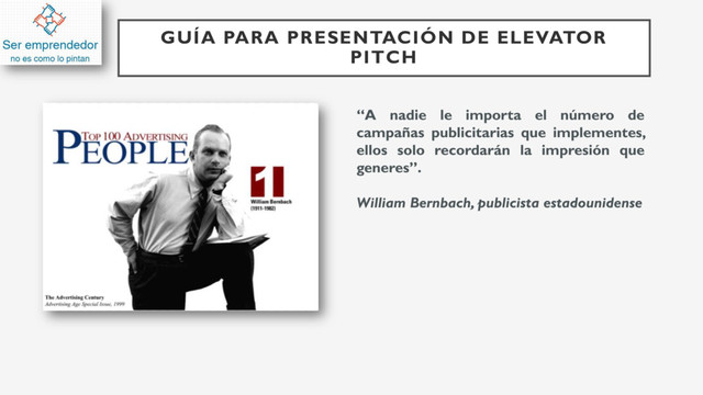 Esta guía te podrá ayudar para generar tu elevator pitch y lograr el interés de tu audiencia, al final encontrarás un ejemplo que podrás visualizar en YouTube https://www.youtube.com/watch?v=-jjtaBf5cXE