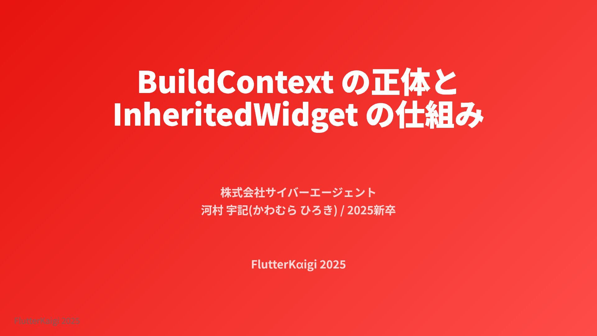 BuildContext の正体と InheritedWidget の仕組み 株式会社サイバーエージェント 河村 宇記(かわむら ひろき) / 2025新卒
