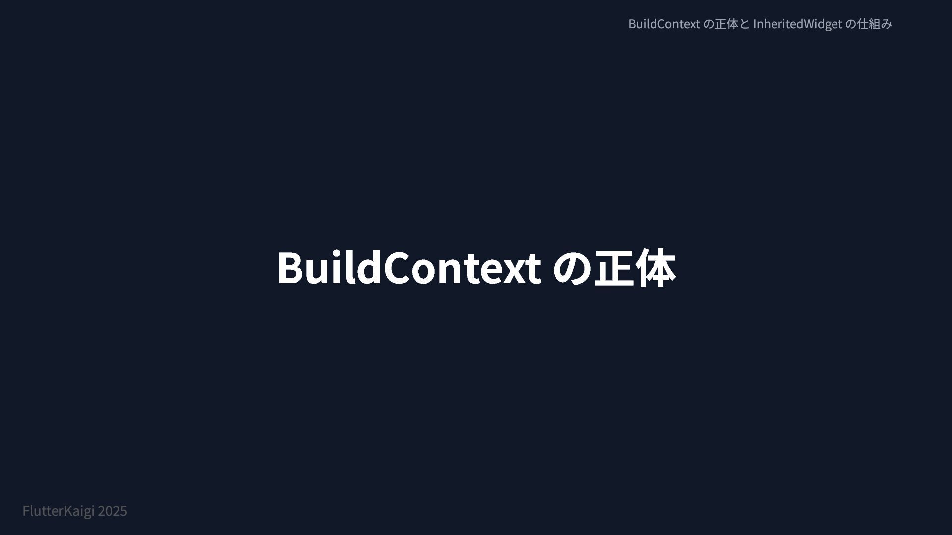 BuildContext の正体 BuildContext の正体と InheritedWidget の仕組み FlutterKaigi 2025