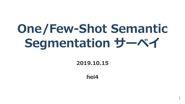 One/Few-Shot Semantic Segmentation サーベイ 2019.10.15 hei4 1