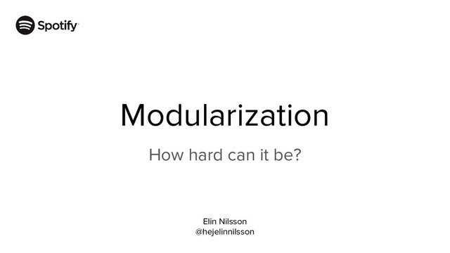 This talk will walk you through the Spotify modularization journey: why we got started, how we went about it, what we have learned through the process, and also why you should be thinking about modularizing your code, if you haven't already started.