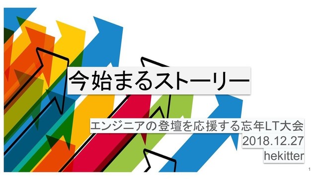 2018/12/27 エンジニアの登壇を応援する忘年LT大会 #engineers_lt https://techplay.jp/event/705867 hekitter(4番手)のLT資料です。