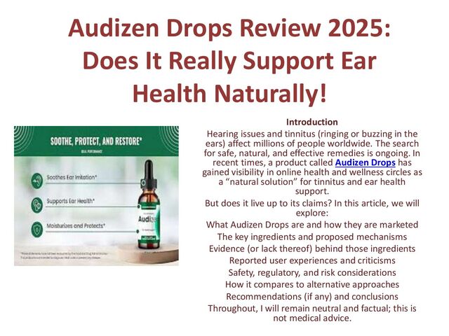 Audizen Drops have gained attention as a natural ear-health supplement designed to support hearing, reduce ear discomfort, and improve overall ear function. This in-depth article explores what Audizen Drops are, their ingredients, benefits, scientific backing, potential side effects, customer reviews, and whether they are worth considering.