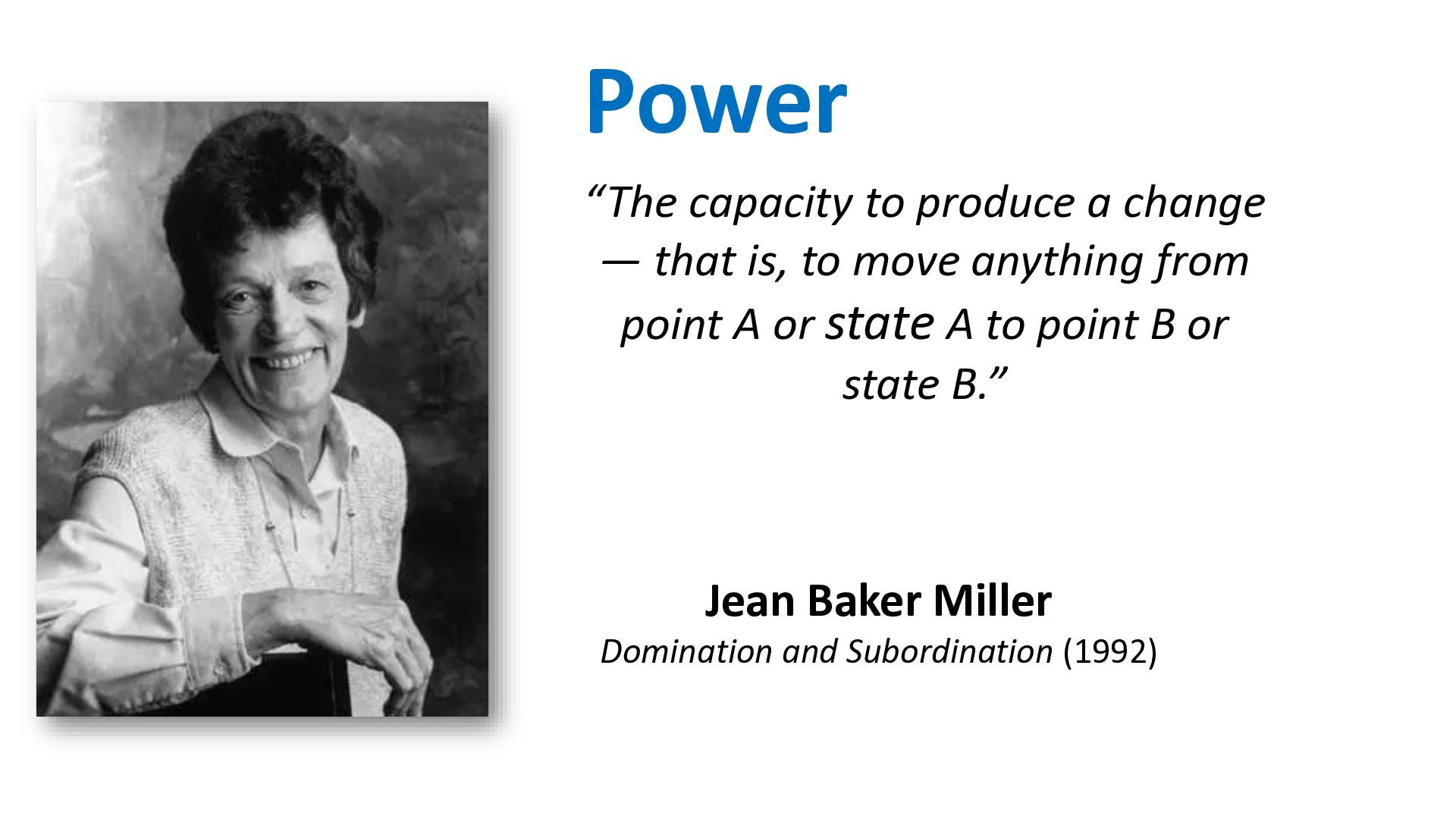 move anything from point A or state A to point B or state B.” Jean Baker Miller Domination and Subordination (1992) Power
