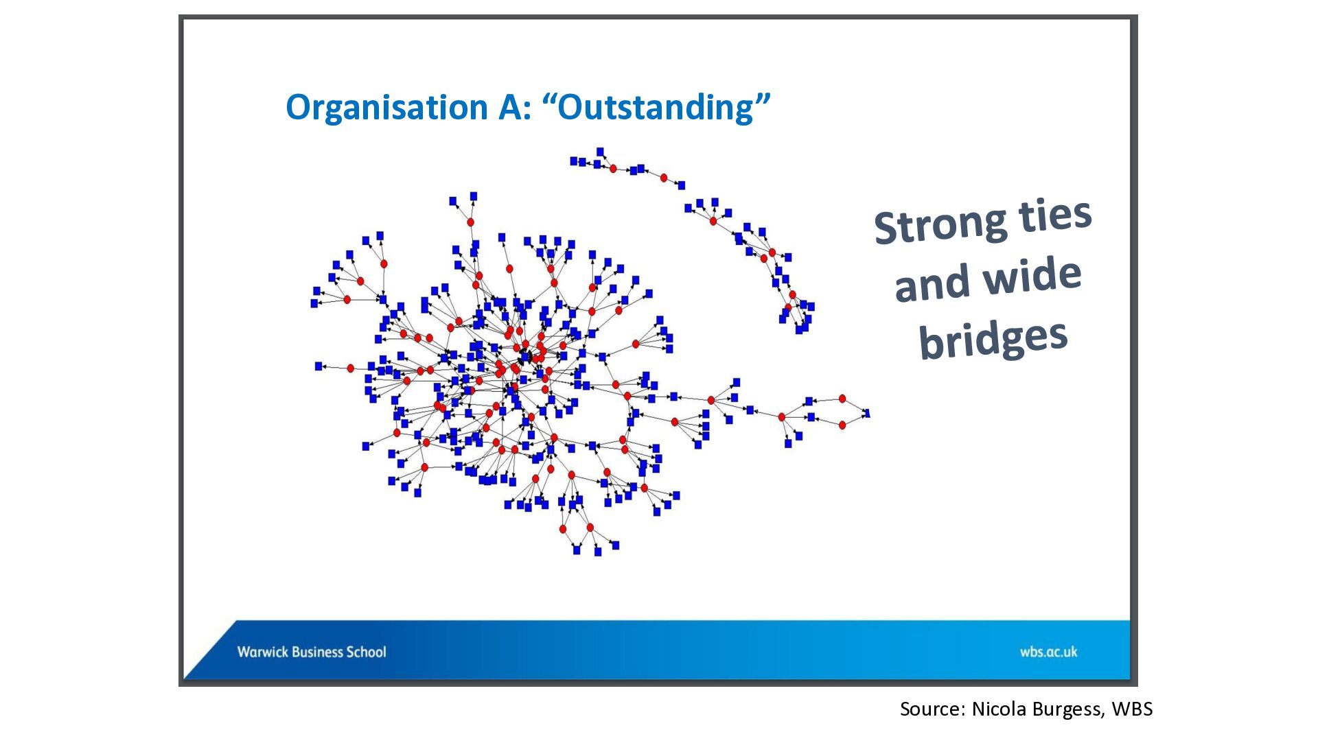 spanners”, “connectors” or “knowledge brokers”) • Information travels fast, but people are unlikely to act on it • If that one connection breaks, the link is lost Bridges: the connections between strong tie groups See Centola D (2021) Change: How to Make Big Things Happen and Parker A and Brennecke J (2025) Knowledge Networks in Organizations in The Social Capital Imperative: The social revealing, developing, and leveraging organizational networks