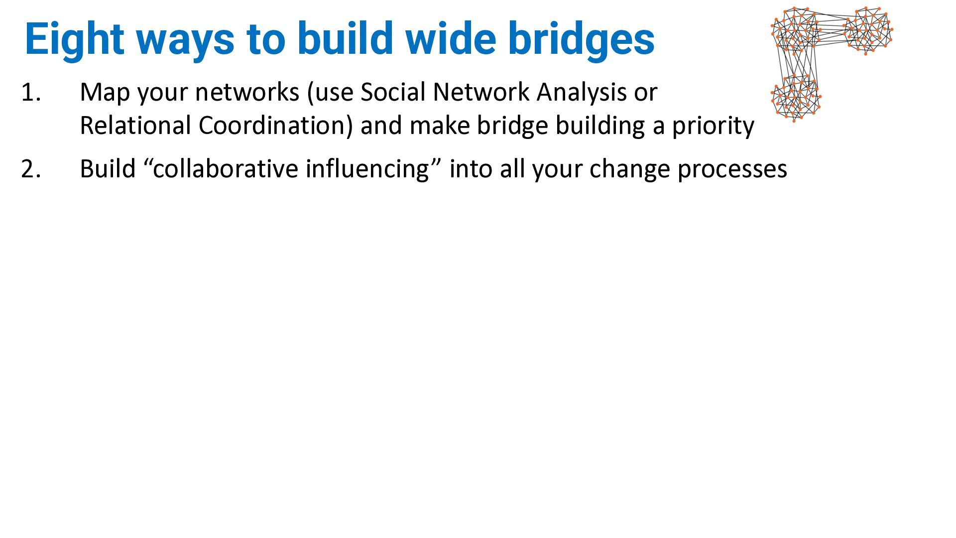 (use Social Network Analysis or Relational Coordination) and make bridge building a priority 2. Build “collaborative influencing” into all your change processes