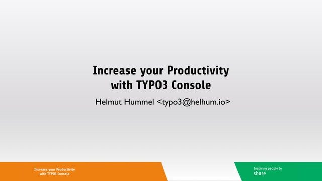 I'll show a set of TYPO3 Commands, that helps you automate TYPO3 installation and deployment and therefore let's you achieve more with doing less, hence increase your productivity.