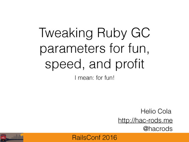 Whether you are building a Robot, controlling a Radar, or creating a Web App, the Ruby Garbage Collector (GC) can help you. The stats exposed by the Garbage Collector since Ruby v2.1 caught my attention and pushed me to dig deeper. Both Ruby 2.1 and 2.2 brought great performance improvements. From a practical point of view, we will discuss how to use the GC to enhance the performance of your software, from configuration parameters to different approaches on how you can change them yourself.