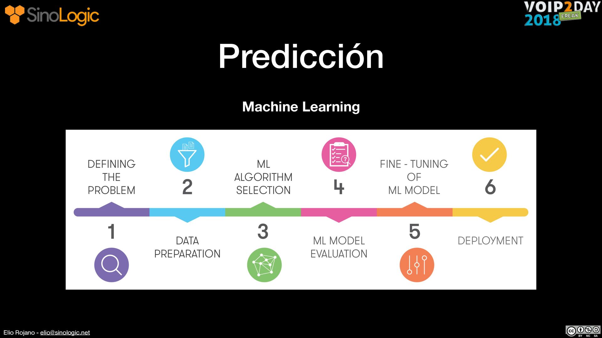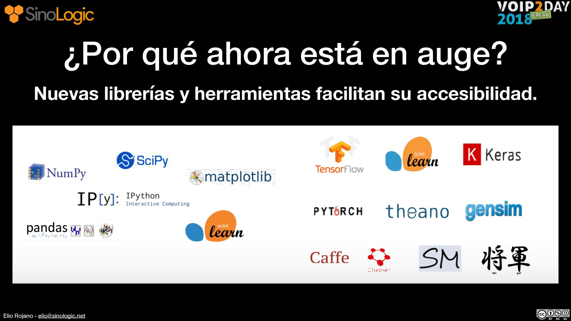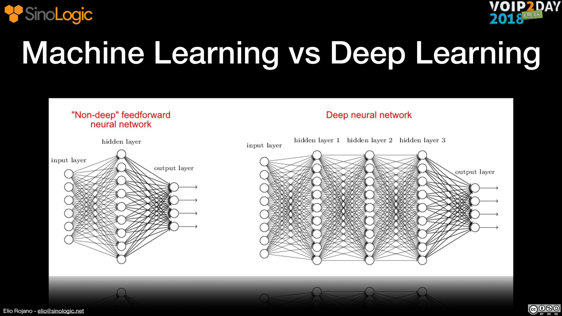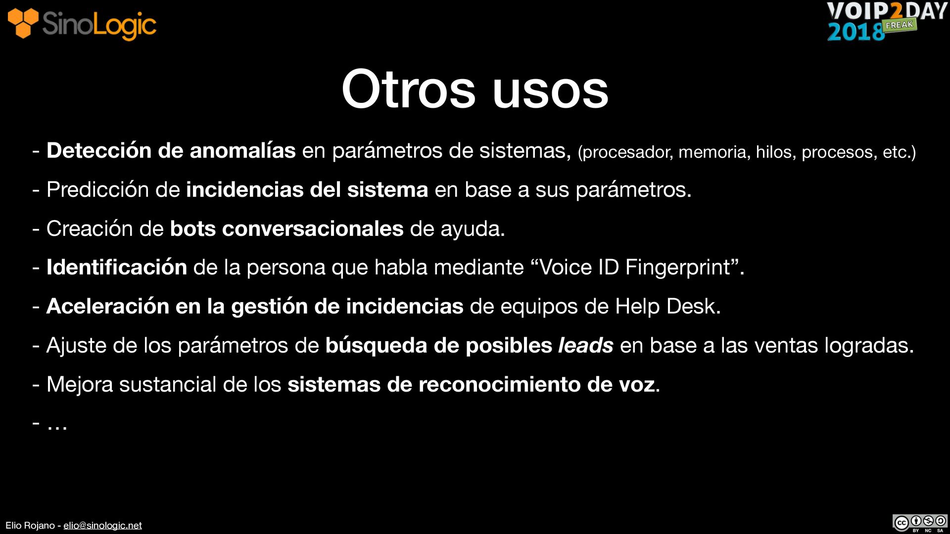La presentación “Inteligencia Artificial y Big Data en VoIP” impartida por Elio Rojano para el VoIP2DAY 2018, aborda cómo la combinación de estas tecnologías puede transformar la telefonía IP y las comunicaciones en tiempo real. Explica de forma práctica los fundamentos de la IA —desde modelos matemáticos, regresiones y clasificación hasta machine learning y deep learning—, destacando la importancia del Big Data como base para entrenar sistemas más precisos. También se muestran ejemplos y demos con herramientas como Anaconda, TensorFlow y Keras, aplicadas a la detección de anomalías, reconocimiento de patrones, análisis predictivo y mejora en la calidad de voz mediante WebRTC. Finalmente, se exponen usos reales y futuros —como bots conversacionales, Voice ID o asistentes inteligentes tipo Google Duplex— que evidencian el impacto de la IA en la comunicación empresarial y personal