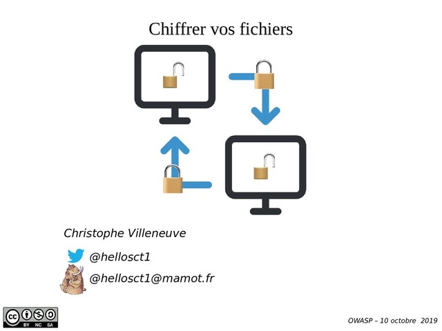 Présentation effectuée à Meetup OWASP (10 octobre 2019) par Christophe Villeneuve sur "Chiffrer vos fichiers".