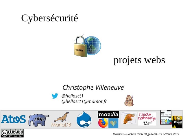 Présentation effectuée Sprint Open Source de la DINUM et du Lab 110bis (19 novembre 2019) organisé La communauté #BlueHats par Christophe Villeneuve sur "cybersécurité dans les projets webs".