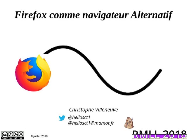 Présentation effectuée au RMLL 2018 sur "Firefox comme navigateur Alternatif" par Christophe Villeneuve .