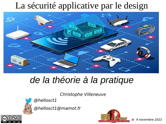 Présentation effectuée à GS Days (4 novembre 2021) par Christophe Villeneuve sur "La sécurité applicative par le design ".