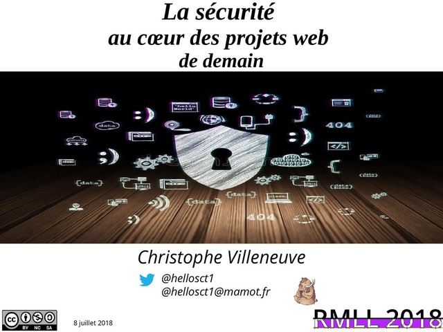 Présentation effectuée au RMLL 2018 sur "La securite au coeur des projets web" par Christophe Villeneuve .