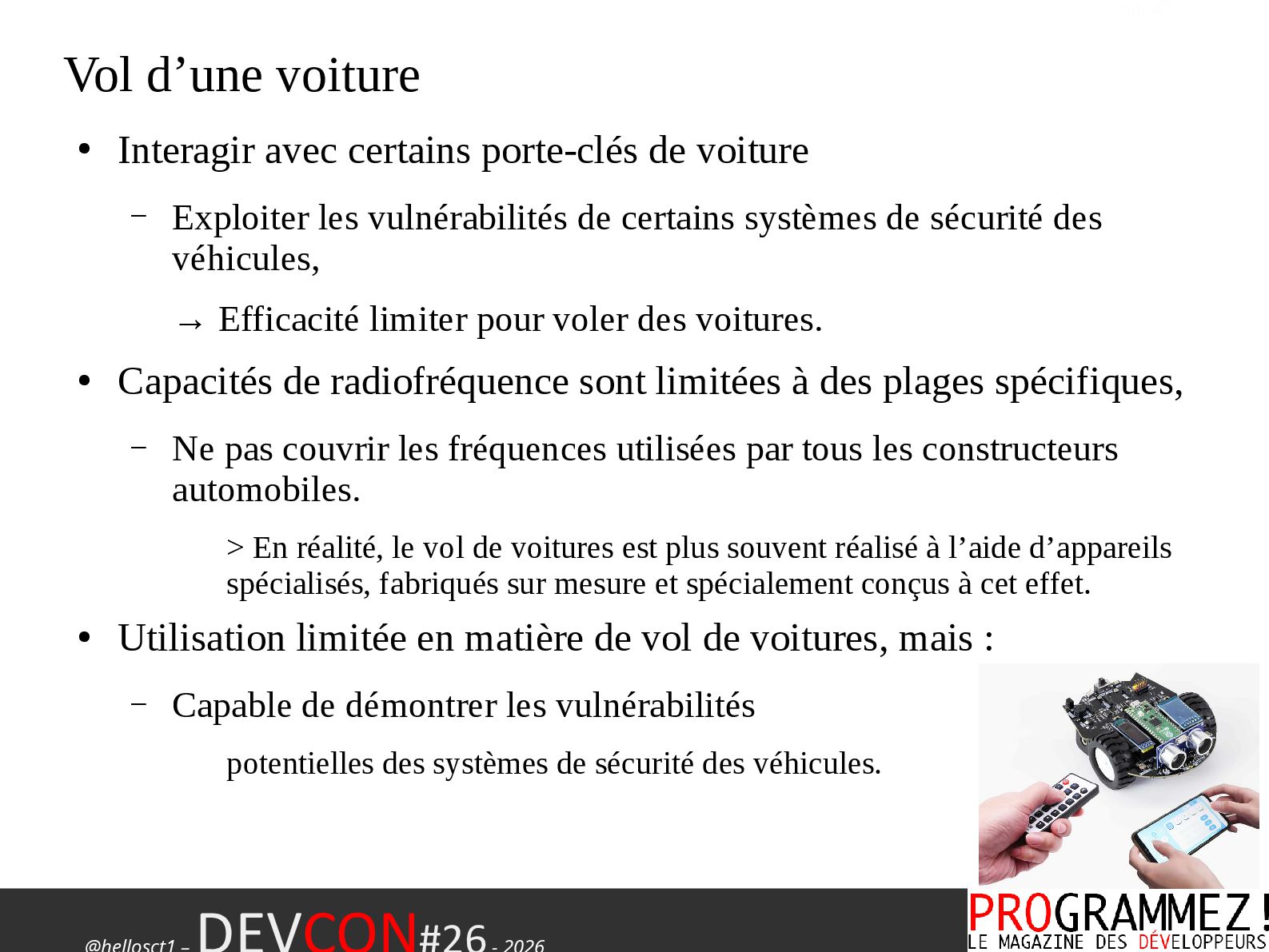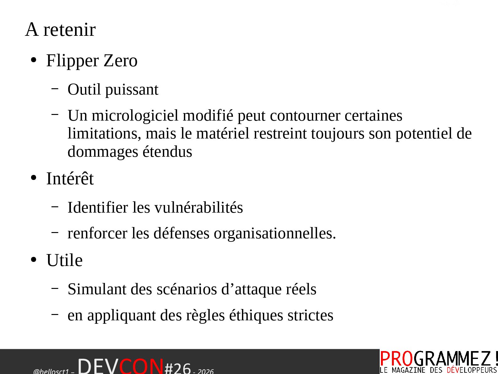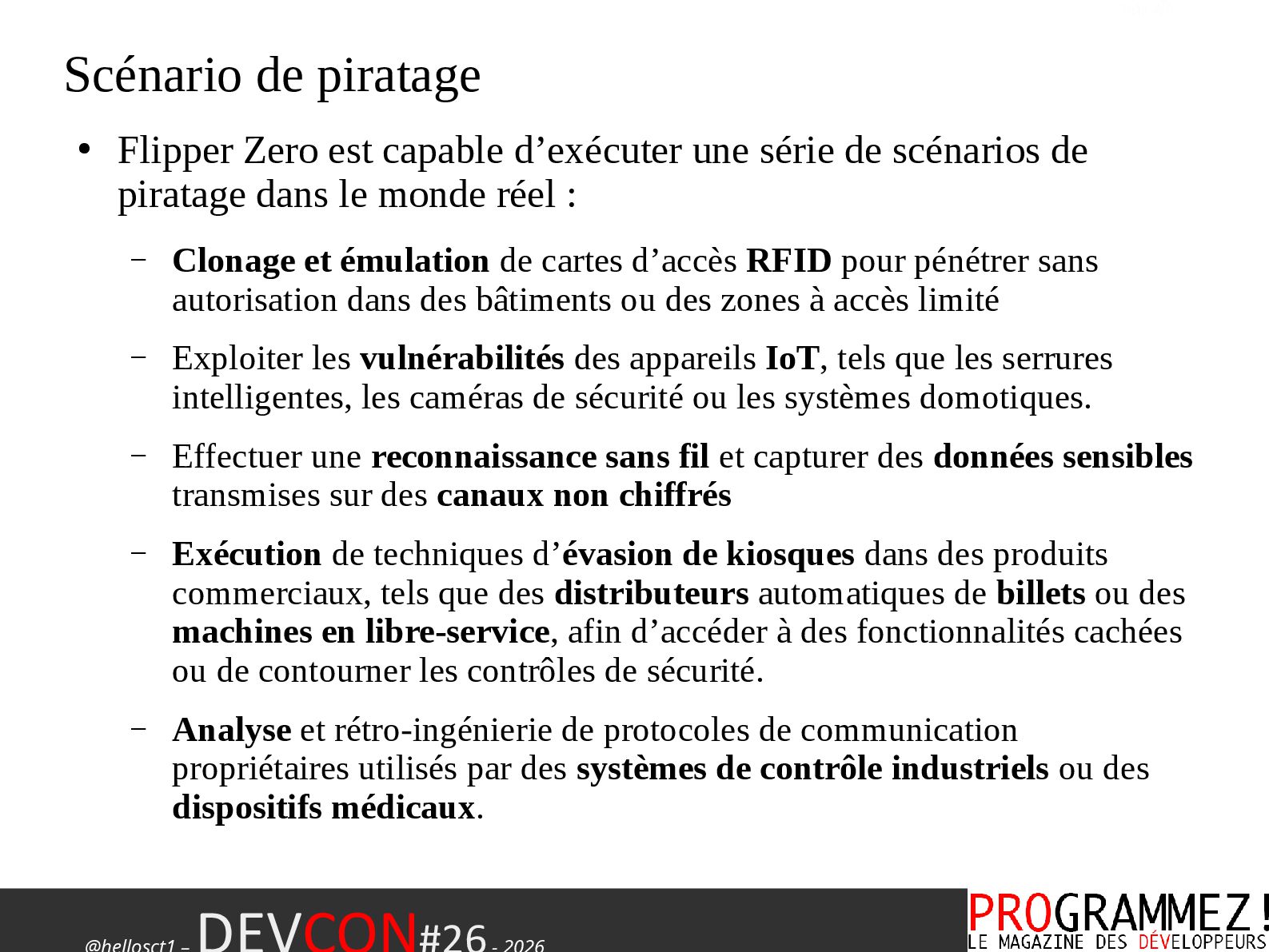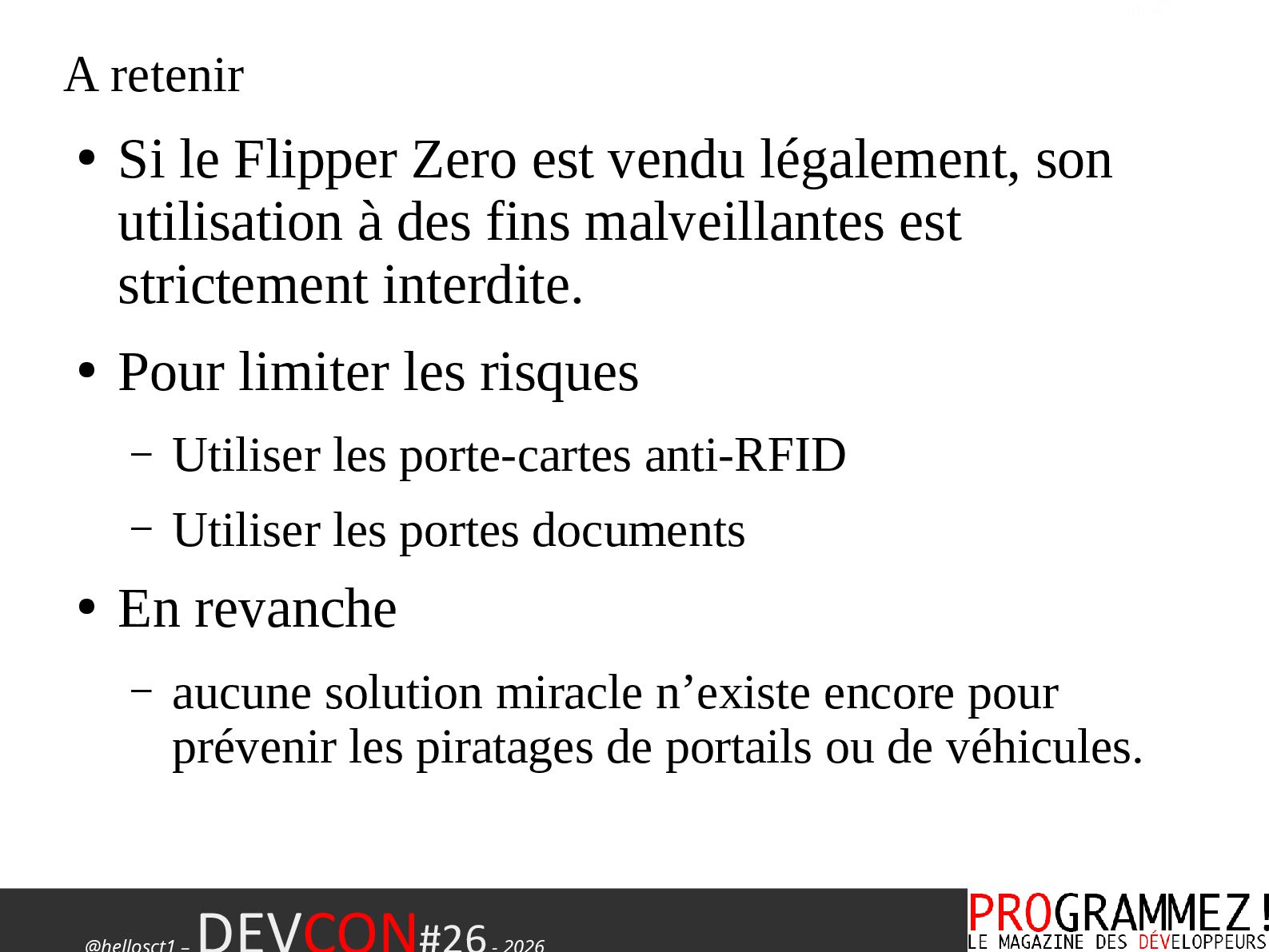 Cette session vous explique et vous montre les risques du flipper zero, des alternatives et comment se protéger avec les nouveaux protocoles avec la possibilité de créer le vôtre avec un Raspberry PI