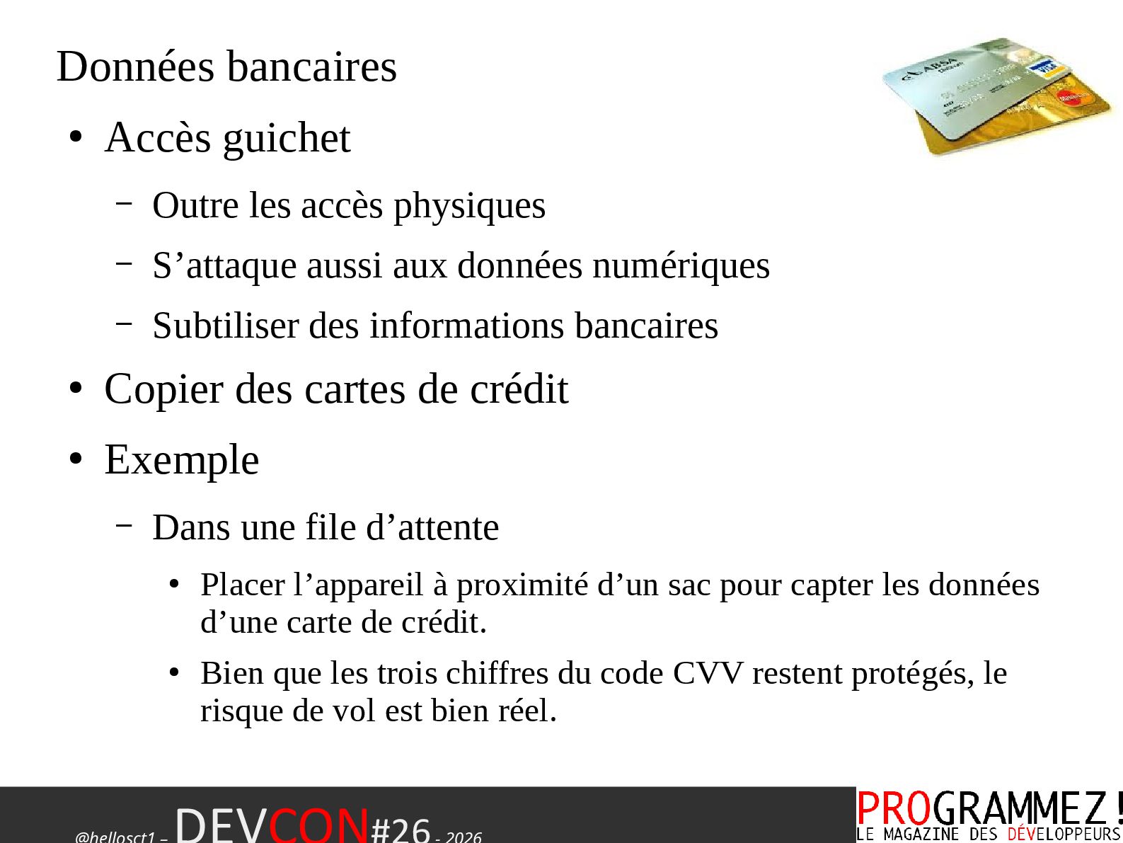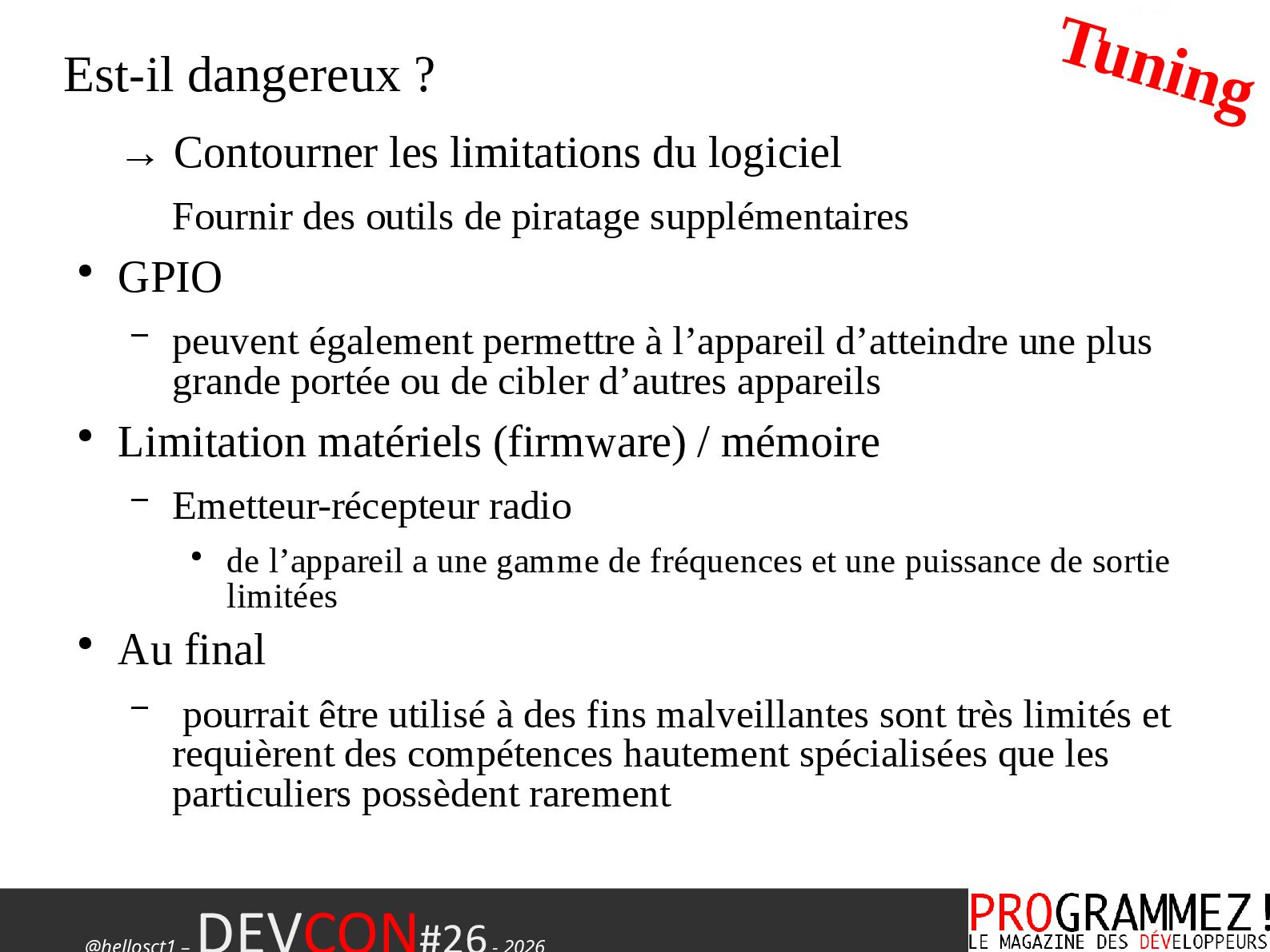 Présentation effectuée à la DEVCON #26 par Christophe Villeneuve sur "Les nouveaux gadgets de la peur".