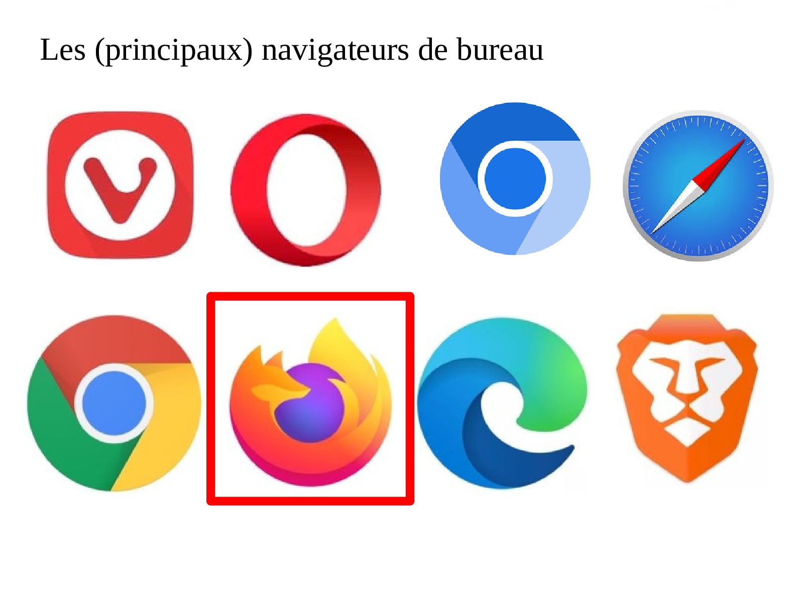 • Navigateur moderne • Outil libre et gratuit • Développement par la fondation Mozilla • Forte communauté et de développeurs • Existe pour tous les OS • Populaire • Respectueux des standards W3C • Des milliers Extensions
