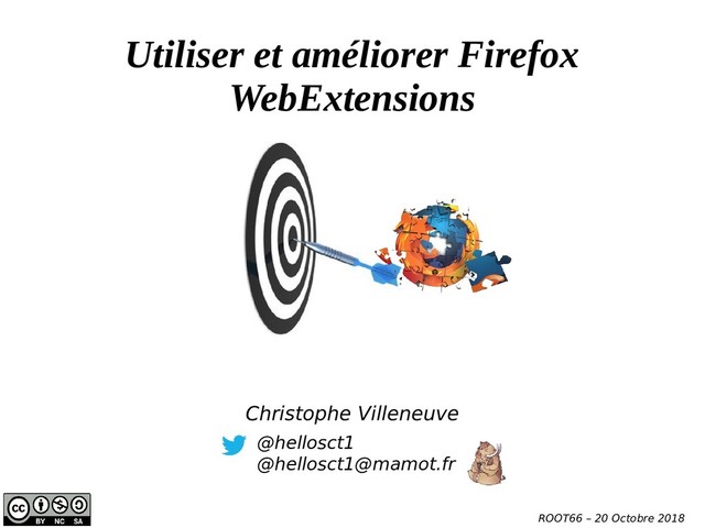 Présentation effectuée pour Root66 sur le thème "Utiliser et ameliorer firefox avec les webextensions" par Christophe Villeneuve .
