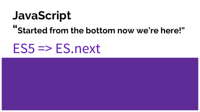 1997 • 2nd version - June 1998 • 3st version - December 1999 • 4th version - Abandoned • 5th version - December 2009 • 5.1th version - June 2011 • 6th a.k.a. ES2015 - June 2015 • 7th a.k.a. ES2016 - June 2016 • 8th a.k.a. ES2017 - draft • ES.Next - stages non included on draft