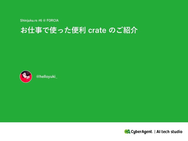 Shinjuku.rs #6 用のスライドです。仕事で使った便利な crate をいくつか紹介しました。
