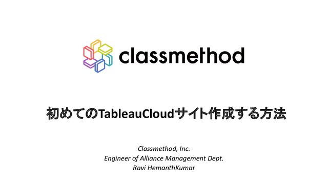 初めてのTableauCloudサイト作成する方法 Classmethod, Inc. Engineer of Alliance Management Dept. Ravi HemanthKumar