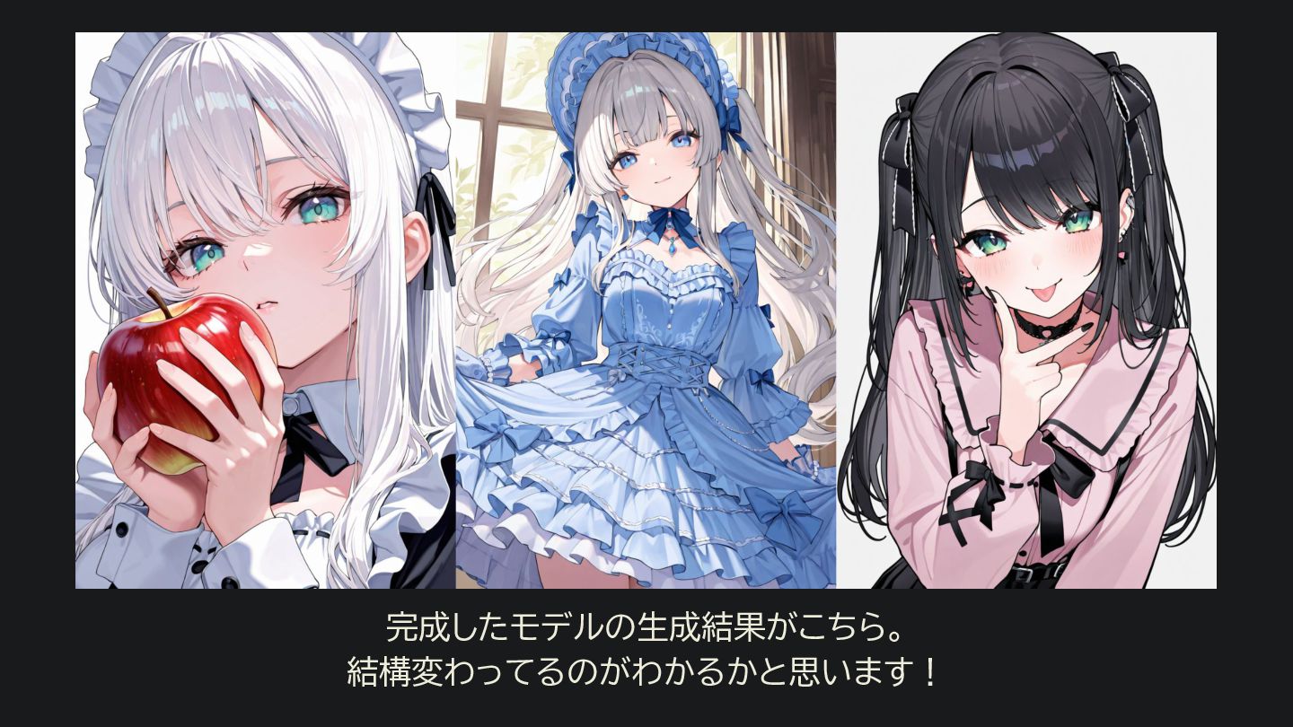完成したモデルの生成結果がこちら。 結構変わってるのがわかるかと思います!