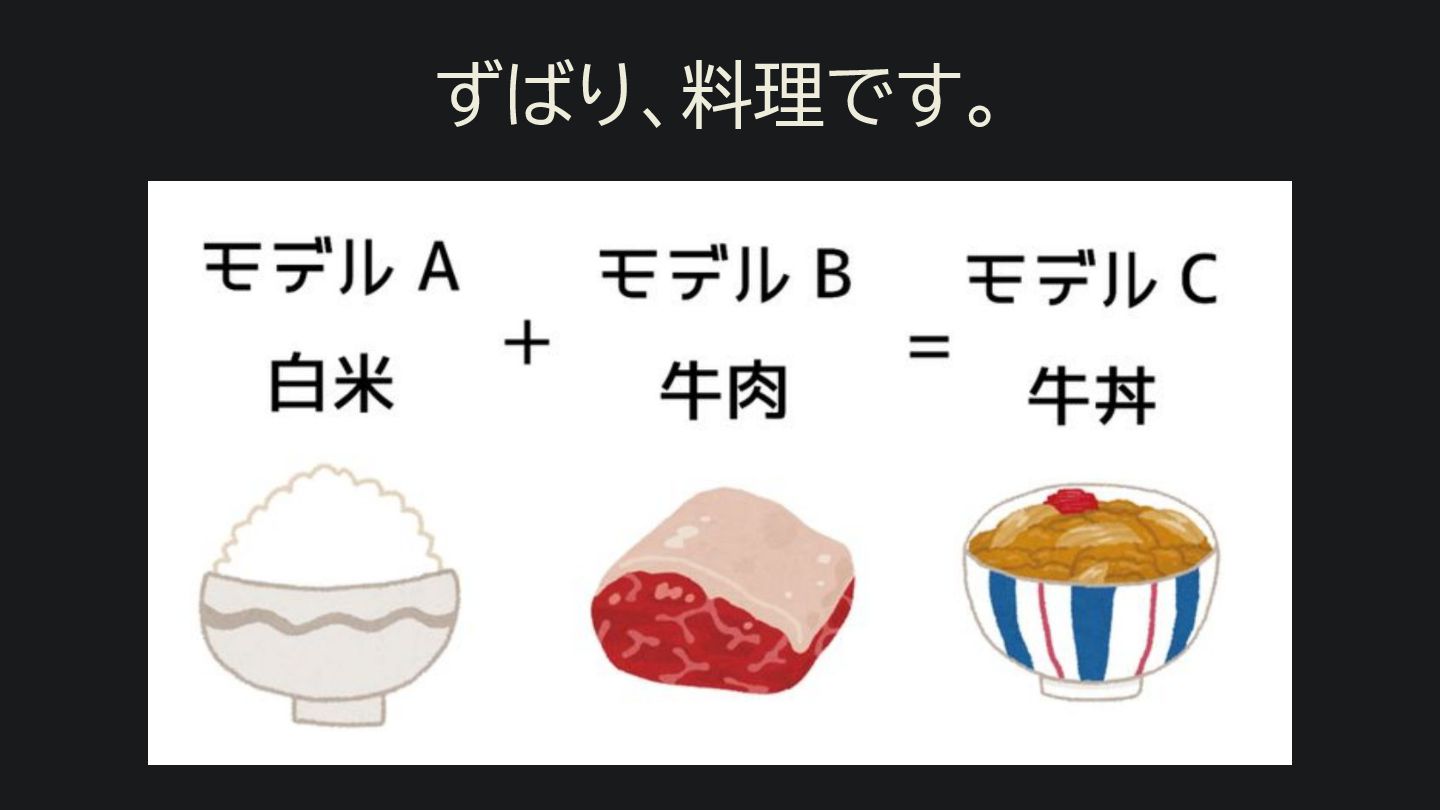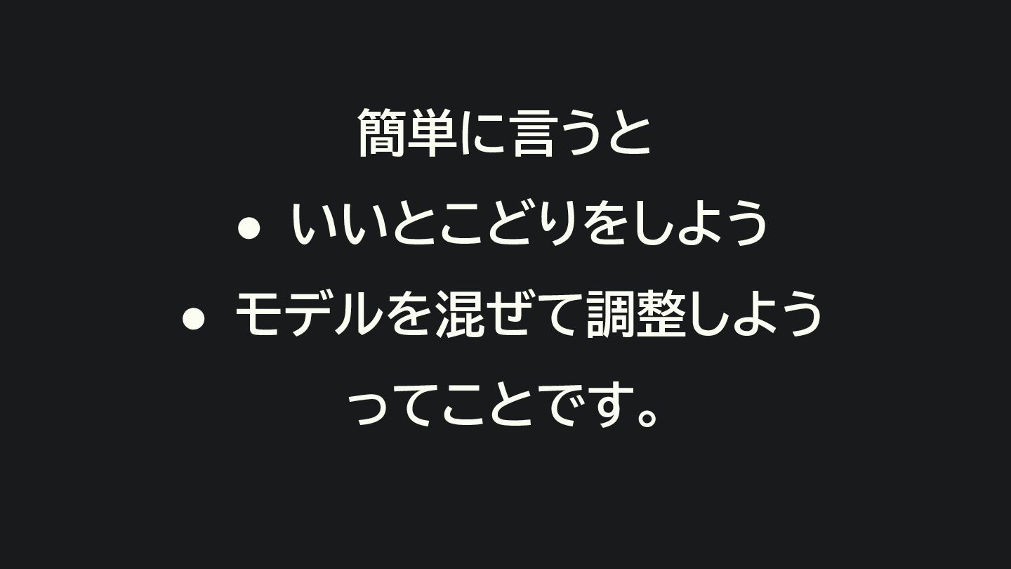 簡単に言うと • いいとこどりをしよう • モデルを混ぜて調整しよう ってことです。