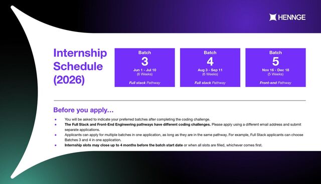 - Batch 3 (2026): Jun 1 - Jul 10 (6 weeks) - Full stack Engineering Pathway