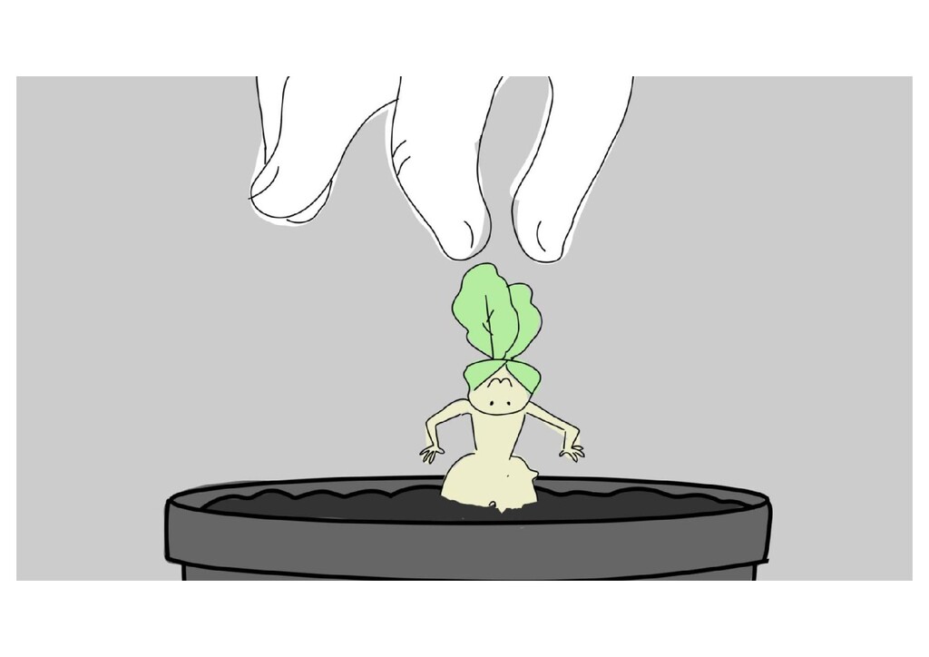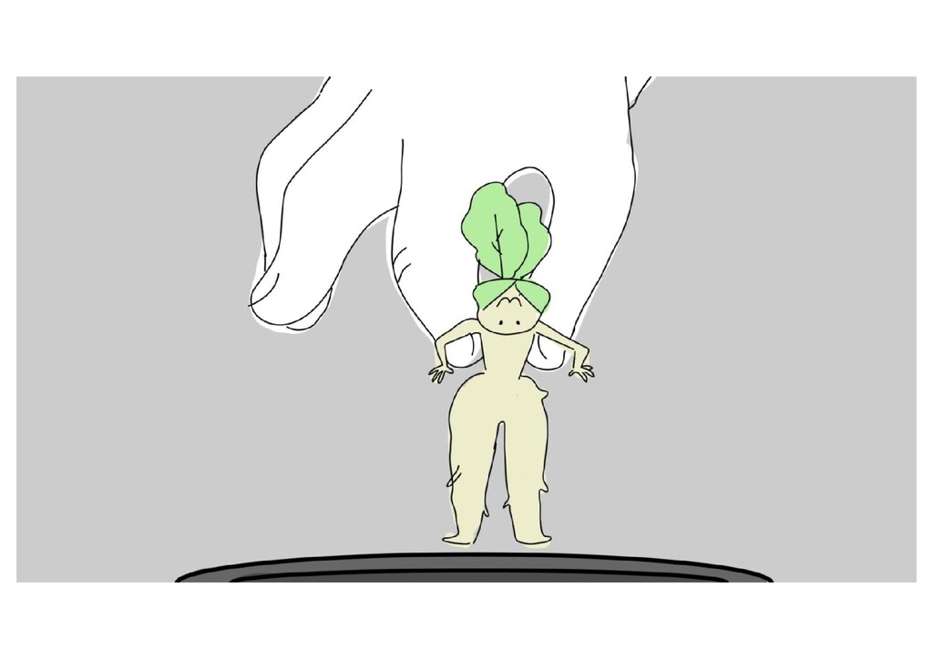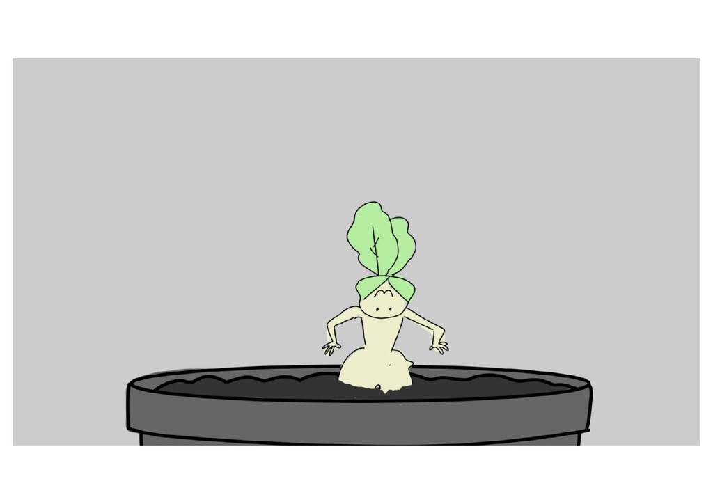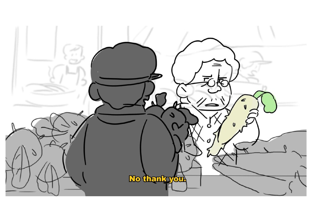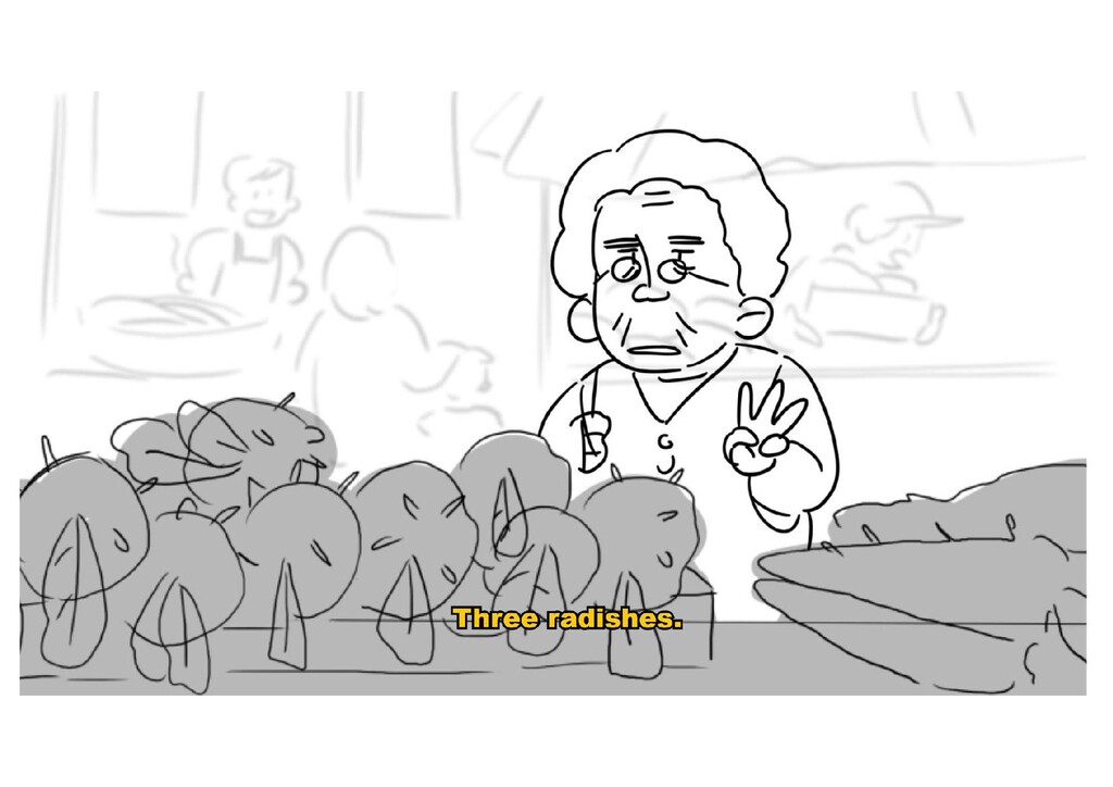 "무" translates to "Radish" and it's a short story about a old korean woman going to the market to buy some ingredients to make kimchi, and one of those ingredients are radishes. But this mondain day will take twist when she discovers that one of these radishes, are indeed alive.