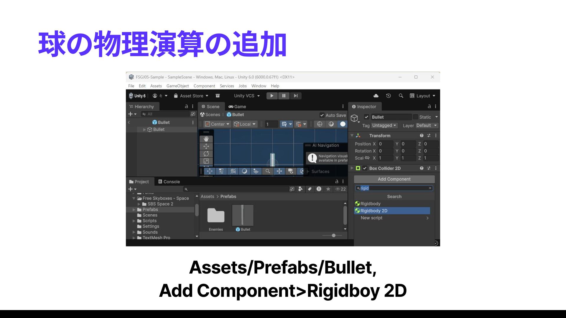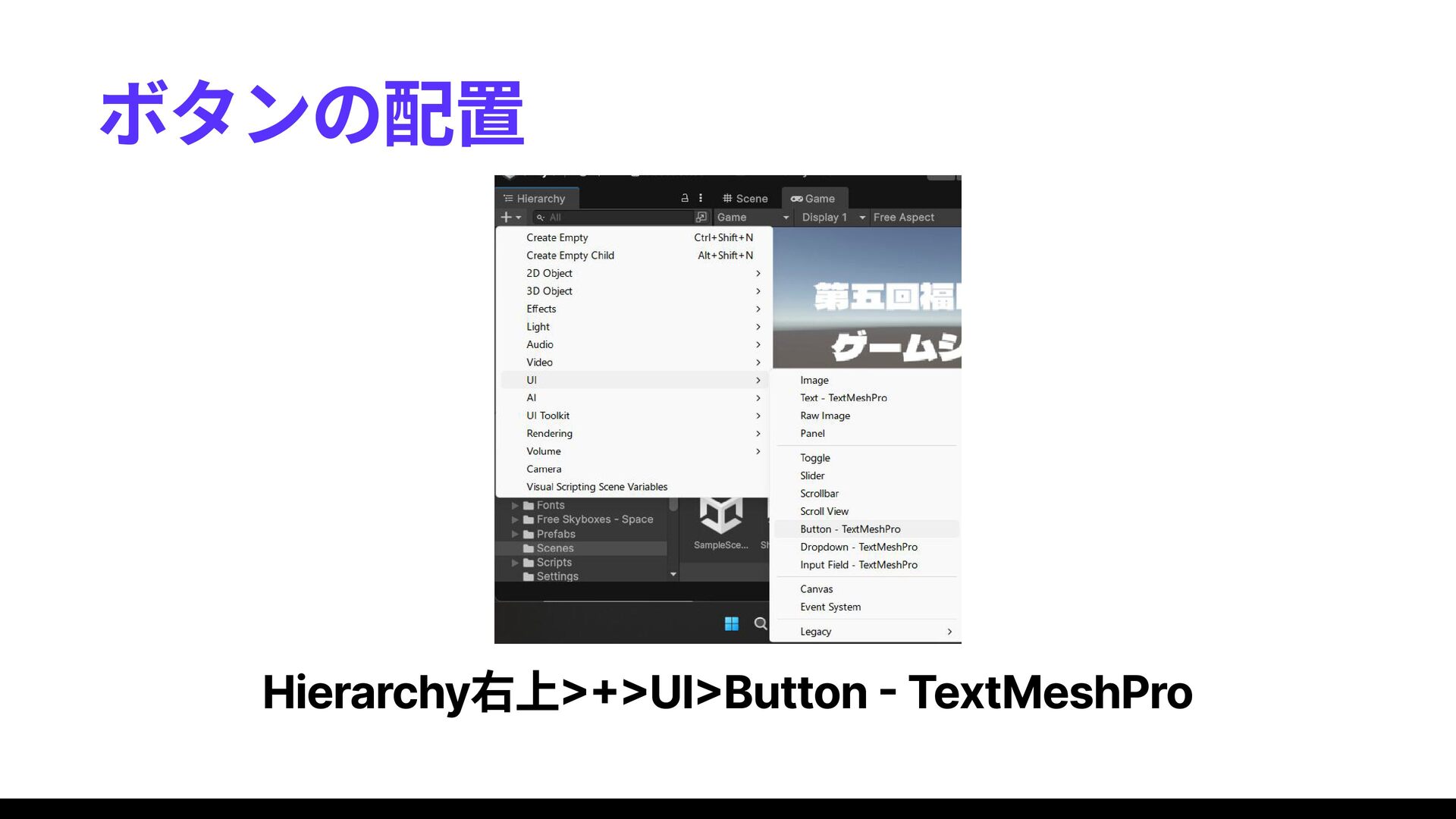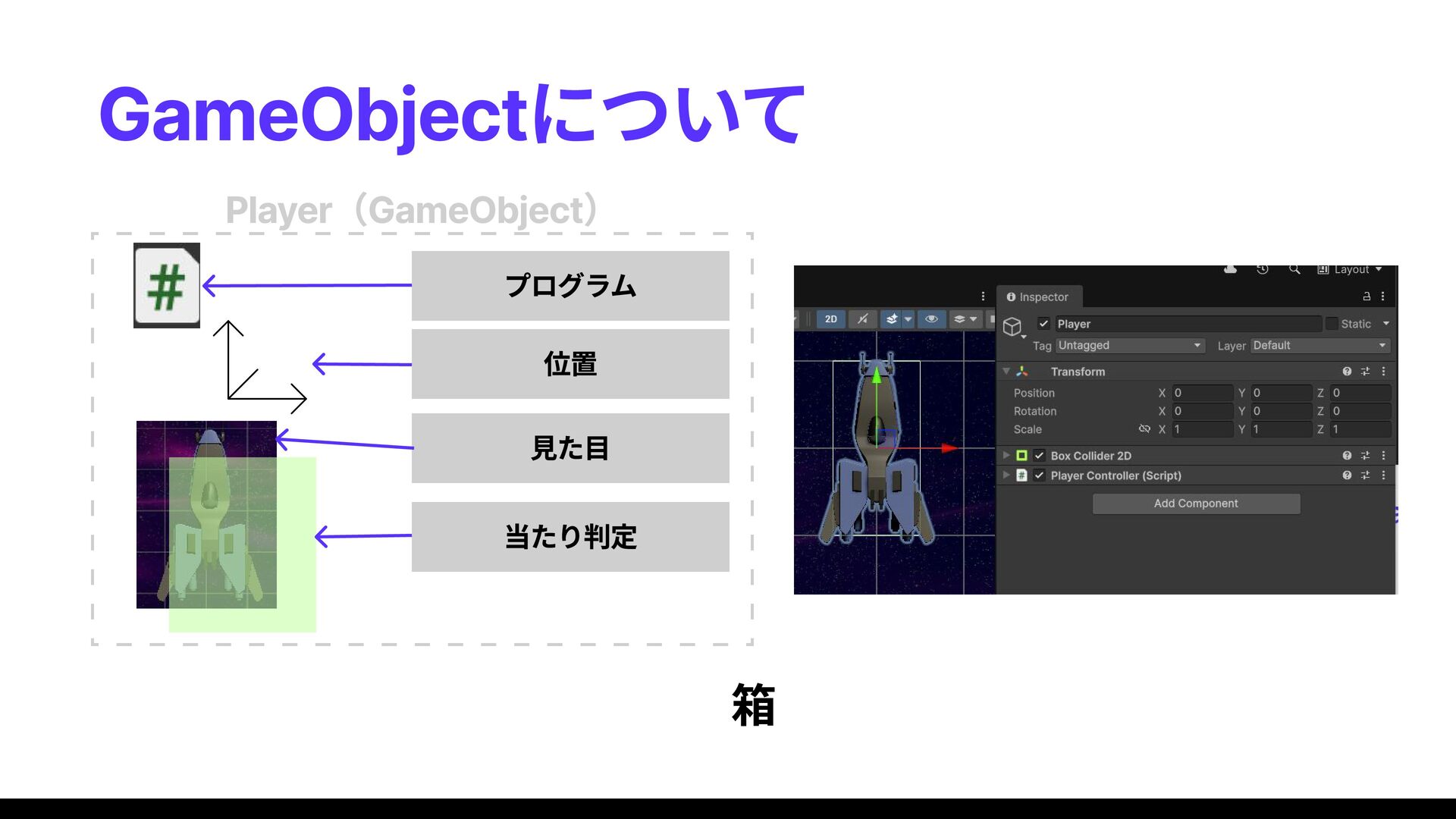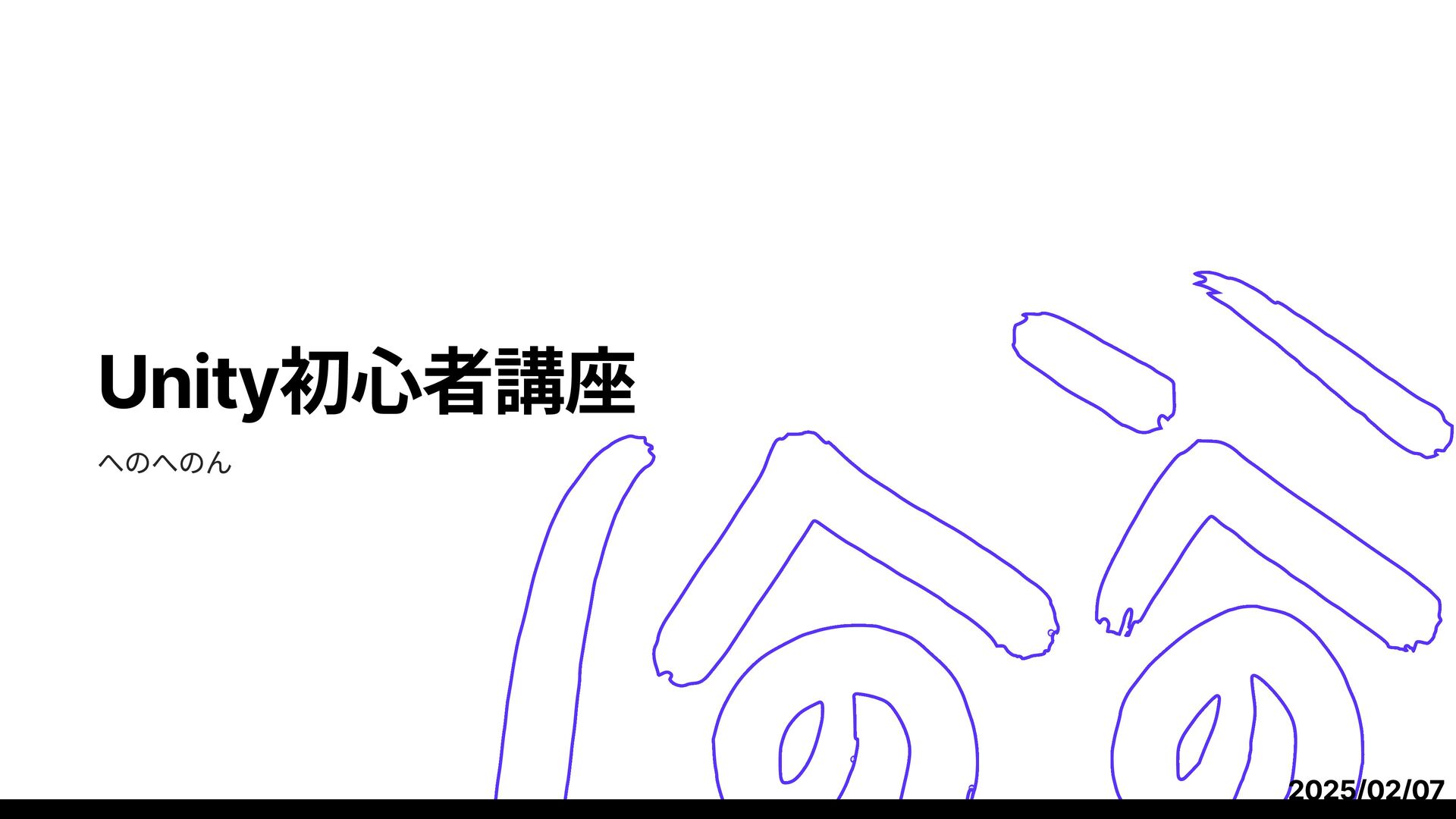unity初心者講習会向けに作成した資料です。参加者は二人! イベントページ: https://connpass.com/event/381136/presentation/ unity導入ガイド: https://docs.google.com/presentation/u/0/d/1Dva-sbAskyAUssw-N_i9ISX14zbAxPcX/edit?rtpof=true&usp=slides_web