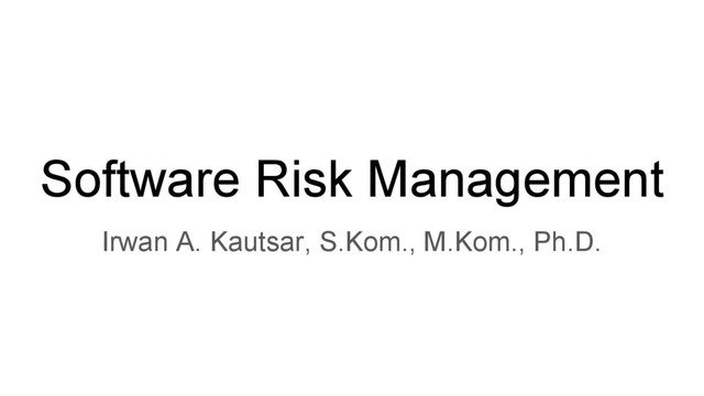 to minimize a loss? • Yes. But No. We need to minimize the “risk”. • S**t will happen. When it happen, it is cost. Software Testing - Irwan A. Kautsar, S.Kom., M.Kom., Ph.D.