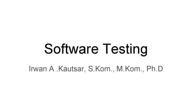 can count and do what you typed. • Software is written by people – people make mistakes. • Critical Software(SW) are zero failure tolerances. Ex: Medical Software. • Less Bug/Failure = less calls. • Business aspect: Avoid runaway Customer. 2 Software Testing - Irwan A. Kautsar, S.Kom., M.Kom., Ph.D.