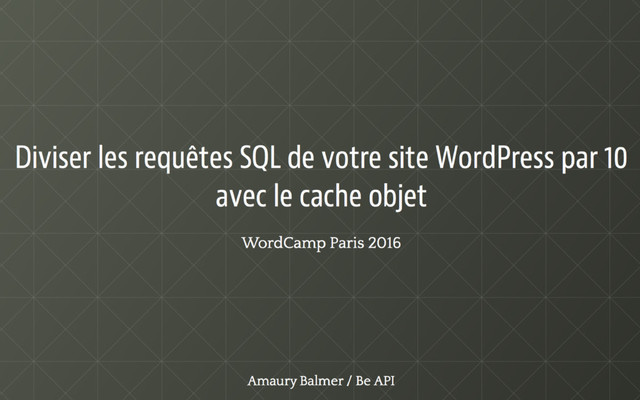 Cette session auront vocation à expliquer le mode de fonctionnement de ce cache, le gain immédiat à son activation, et une mise en oeuvre rapide dans le code de son plugin ou son thème.